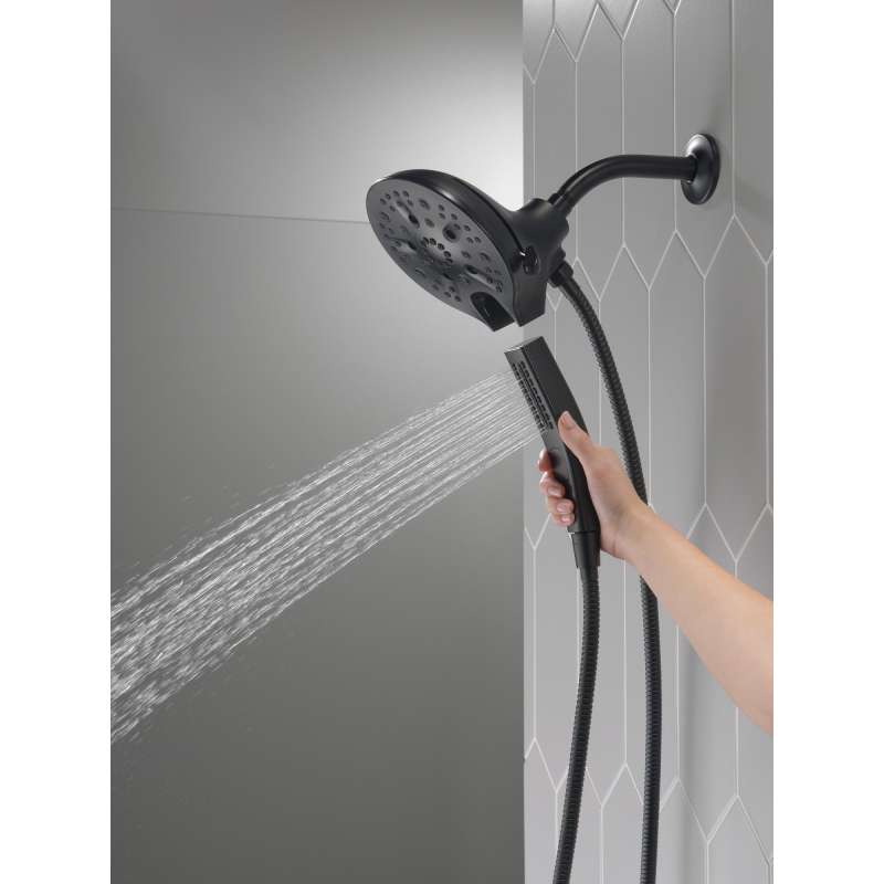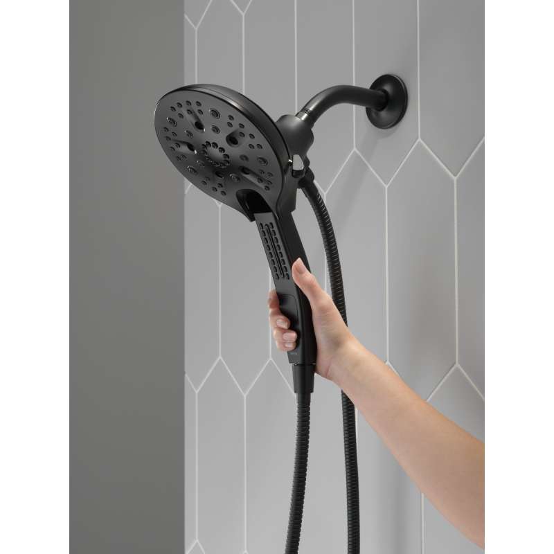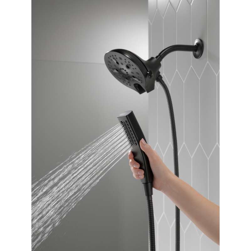 The Delta In2ition Two-in-One Shower features a detachable hand shower which can be used separately from or simultaneously with the shower head. This integrated dual-functionality gives you maximum flexibility without sacrificing warmth, as you can choose to have water streaming from the shower head only, the hand shower only or both the shower head and hand shower at once. Delta H2Okinetic PowerDrench Showers look different because they are different. H2Okinetic showers are powered by an innovative technology that sculpts the water into a unique wave pattern, giving you the feeling of more water without using more water and creating a shower with more warmth, coverage and intensity. So go ahead and indulge, because now you can enjoy the feeling of more water without using more water. Delta MagnaTite Docking uses a powerful integrated magnet to pull your faucet spray wand or In2ition hand shower precisely into place and hold it there so it stays docked when not in use. While other products may gather unsightly mineral build-up over time, Delta soft rubber Touch-Clean spray holes allow any mineral residue to simply be wiped away for an instantly refreshed look – with no need for soaking or the aid of chemical cleaners. The pause setting gives you ample space for shaving, lathering and other shower tasks, without worrying about overspray or water waste. This spray setting helps you conserve water, so you can worry less about depleting your supply of hot water - and you help the environment too. Delta WaterSense labeled faucets, showers and toilets use at least 20% less water than the industry standard—saving you money without compromising performance.
