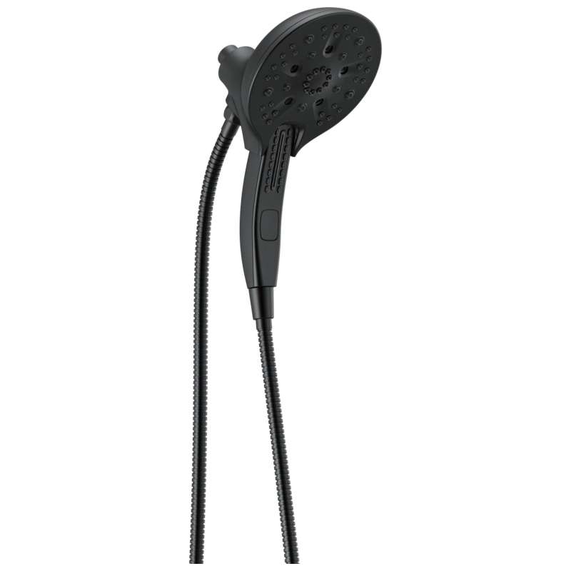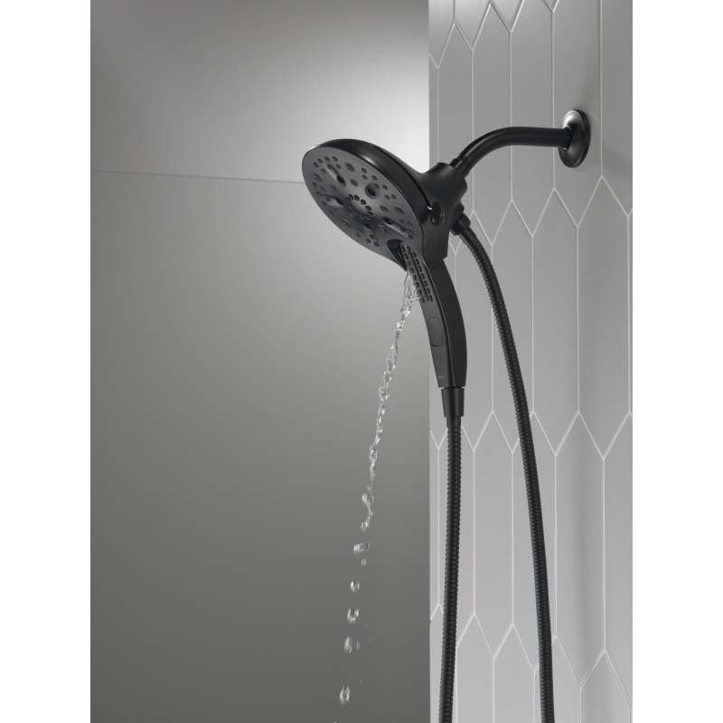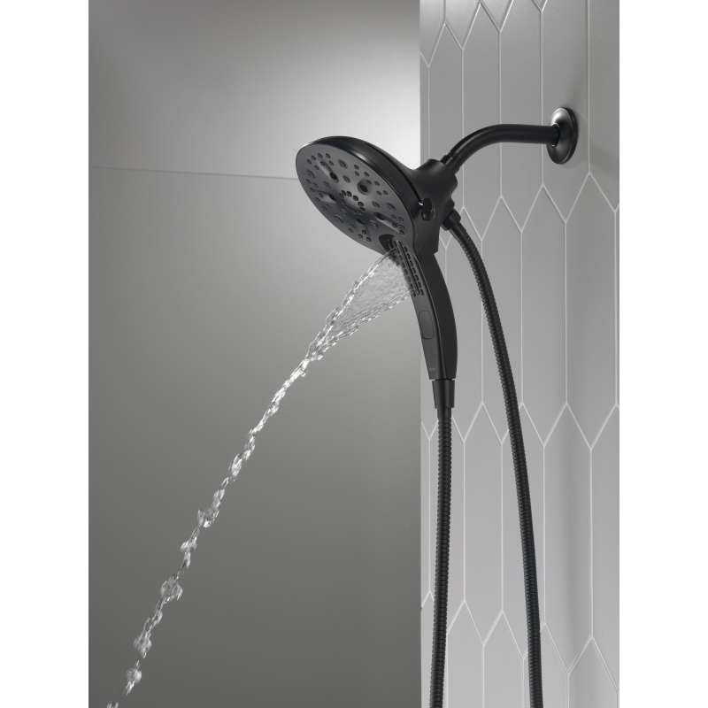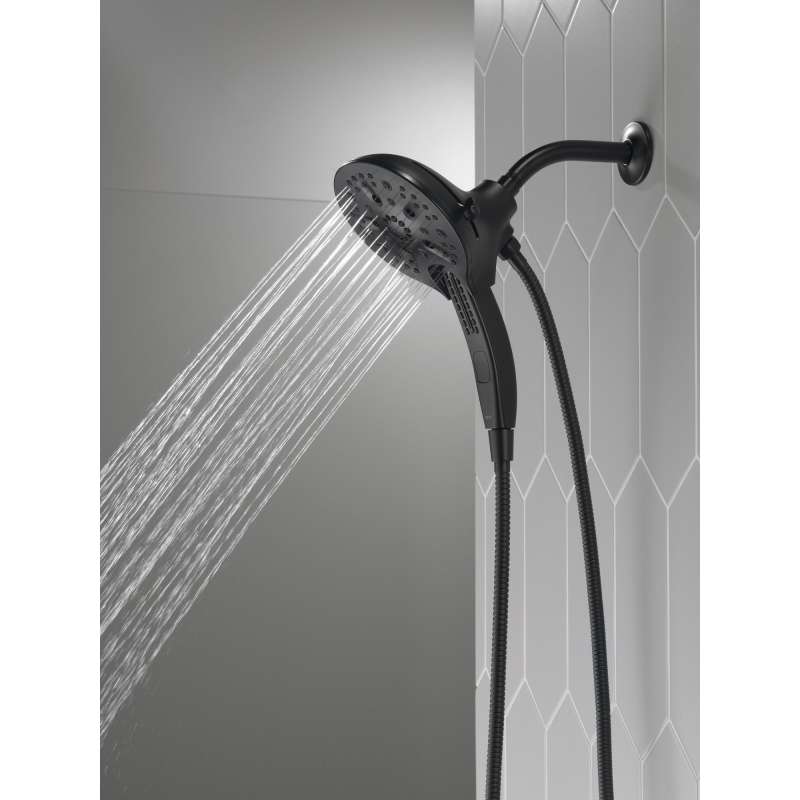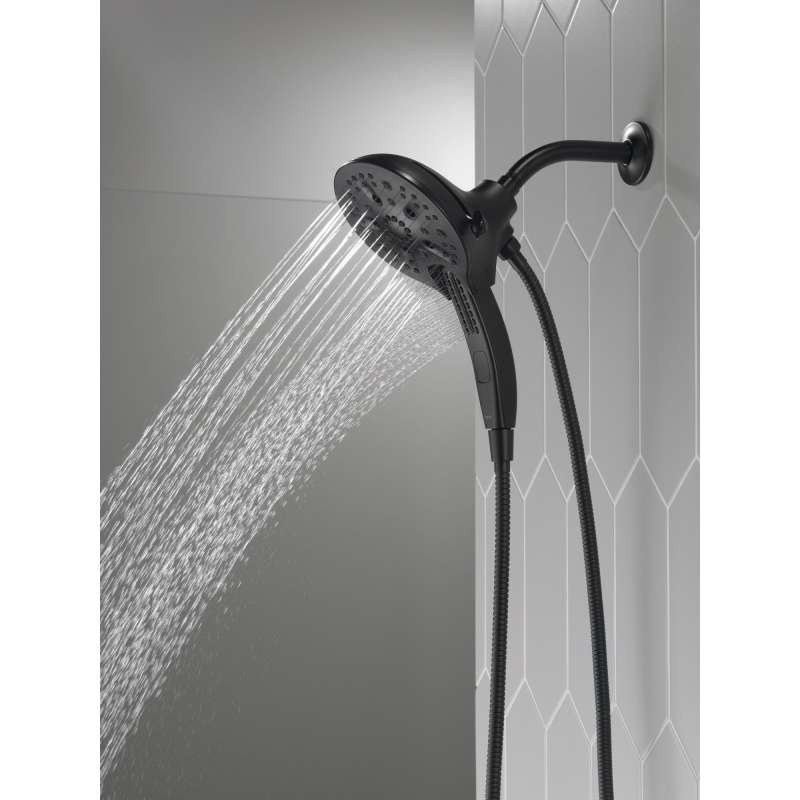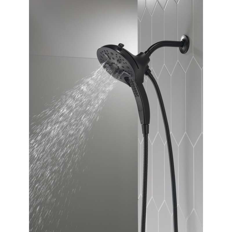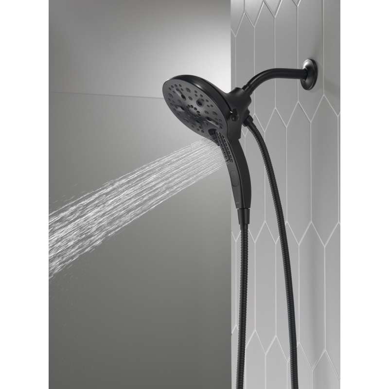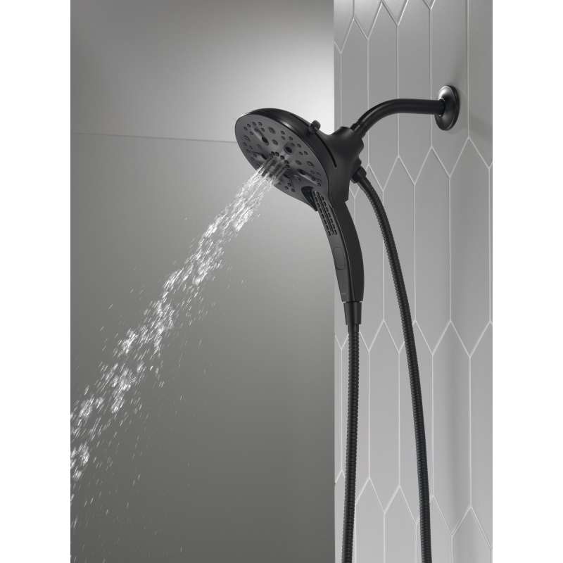 The Delta In2ition Two-in-One Shower features a detachable hand shower which can be used separately from or simultaneously with the shower head. This integrated dual-functionality gives you maximum flexibility without sacrificing warmth, as you can choose to have water streaming from the shower head only, the hand shower only or both the shower head and hand shower at once. Delta H2Okinetic PowerDrench Showers look different because they are different. H2Okinetic showers are powered by an innovative technology that sculpts the water into a unique wave pattern, giving you the feeling of more water without using more water and creating a shower with more warmth, coverage and intensity. So go ahead and indulge, because now you can enjoy the feeling of more water without using more water. Delta MagnaTite Docking uses a powerful integrated magnet to pull your faucet spray wand or In2ition hand shower precisely into place and hold it there so it stays docked when not in use. While other products may gather unsightly mineral build-up over time, Delta soft rubber Touch-Clean spray holes allow any mineral residue to simply be wiped away for an instantly refreshed look – with no need for soaking or the aid of chemical cleaners. The pause setting gives you ample space for shaving, lathering and other shower tasks, without worrying about overspray or water waste. This spray setting helps you conserve water, so you can worry less about depleting your supply of hot water - and you help the environment too.