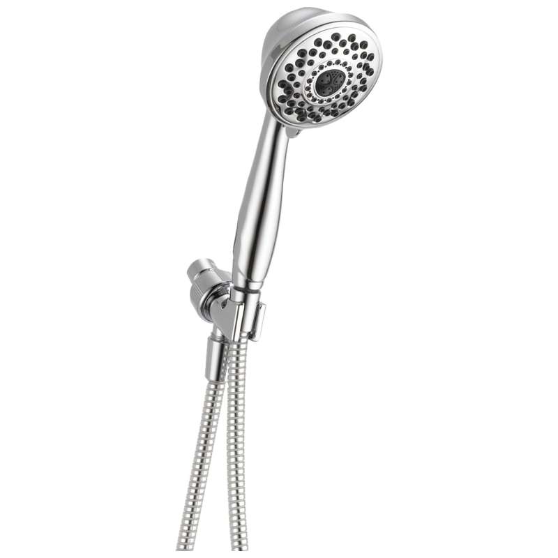 Experience a better shower with the control and flexibility of a Delta hand shower. Great for showering yourself or your loved ones and pets, as well as for keeping your shower and tub clean. While other products may gather unsightly mineral build-up over time, Delta soft rubber Touch-Clean spray holes allow any mineral residue to simply be wiped away for an instantly refreshed look – with no need for soaking or the aid of chemical cleaners. The pause setting gives you ample space for shaving, lathering and other shower tasks, then easily restarts the water with the temperature where you left off. This spray setting helps you conserve water, so you can worry less about depleting your supply of hot water - and you help the environment too. Delta WaterSense labeled faucets, showers and toilets use at least 20% less water than the industry standard—saving you money without compromising performance.