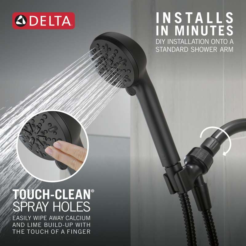 Create a luxurious shower experience with a Delta hand shower. While other products may gather unsightly mineral buildup over time, Delta soft rubber Touch-Clean spray holes allow any mineral residue to simply be wiped away for an instantly refreshed look — with no need for soaking or the aid of chemical cleaners. WaterSense labeled faucets, showers and toilets use at least 20% less water than the industry standard — helping you save water without compromising performance. You can install with confidence, knowing Delta products are backed by our Lifetime Limited Warranty.