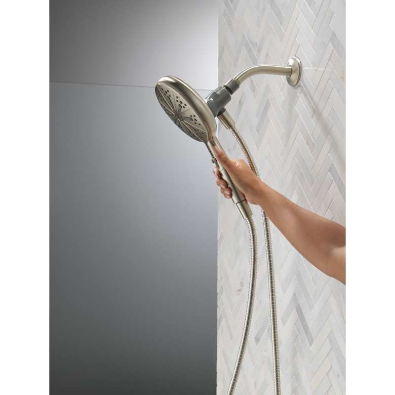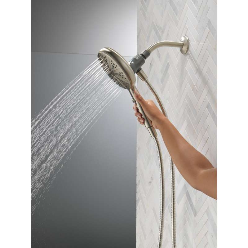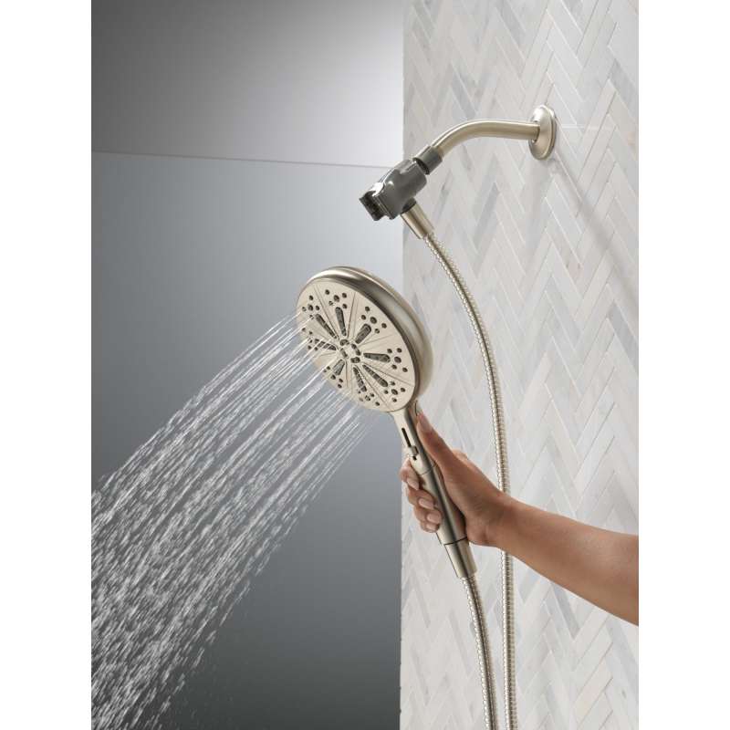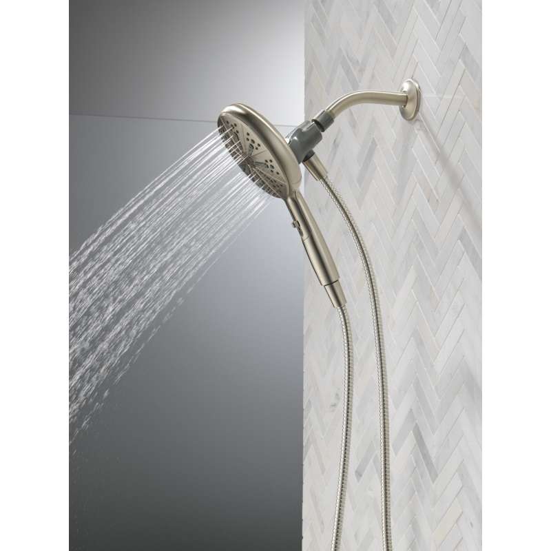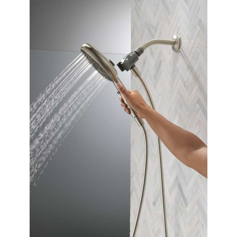 SureDock Magnetic Hand Showers bring reliable docking within reach. An integrated magnet on the back of the hand shower snaps your hand shower into place and holds it there, so it stays docked when not in use and doesn’t droop over time. While other products may gather unsightly mineral buildup over time, soft rubber Touch-Clean spray holes allow any mineral residue to simply be wiped away for an instantly refreshed look — with no need for soaking or the aid of chemical cleaners. The pause setting gives you ample space for shaving, lathering and other shower tasks, then easily restarts the water with the temperature where you left off. Delta WaterSense labeled faucets, showers and toilets use at least 20% less water than the industry standard — helping you save water without compromising performance. You can install with confidence, knowing Delta hand showers are backed by our Lifetime Limited Warranty.