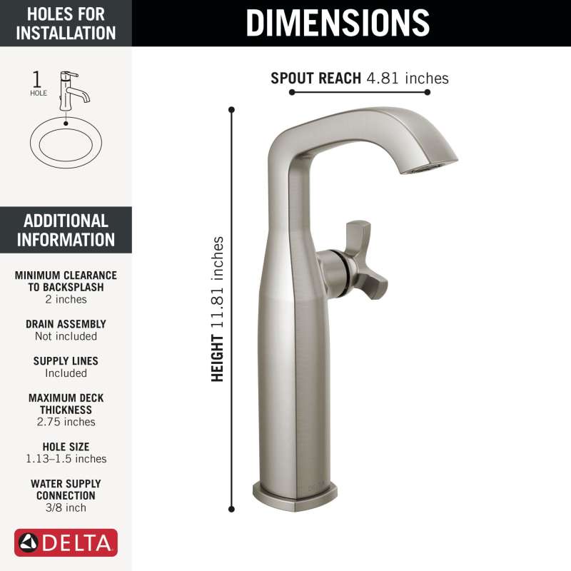 With subtly upturned spout and handles, the stryke bath collection radiates confidence and composure with an assured stature and ascending contours. Delta lumicoat finishes easily wipe clean without the need for cleaners or chemicals and are guaranteed to resist mineral buildup and hard water stains. The ultra-sleek surface repels liquids, resisting water spots and staying cleaner longer, so your faucet stays beautiful. Delta faucets with diamond seal technology perform like new for life with a patented design that reduces leak points, is less hassle to install and lasts twice as long as the industry standard. Watersense labeled faucets use at least 20% less water than the industry standard — helping you save water without compromising performance. You can install with confidence, knowing that delta faucets are backed by our lifetime limited warranty.