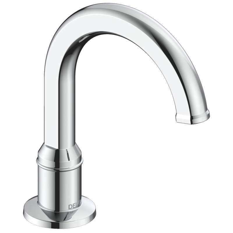 Stylish hands-free faucet featuring proximity sensing technology where the entire faucet body acts as a sensor when hands are placed near the faucet. These faucets are ideal for high-traffic environments, providing superior vandal resistance, and ease of cleaning and maintenance while providing an aesthetic appeal.