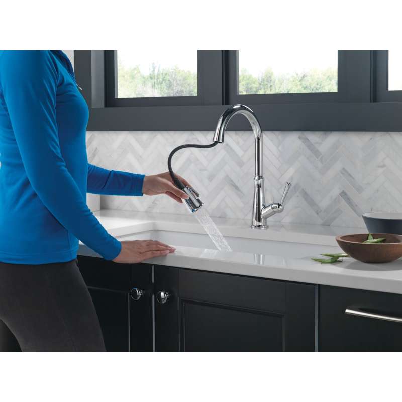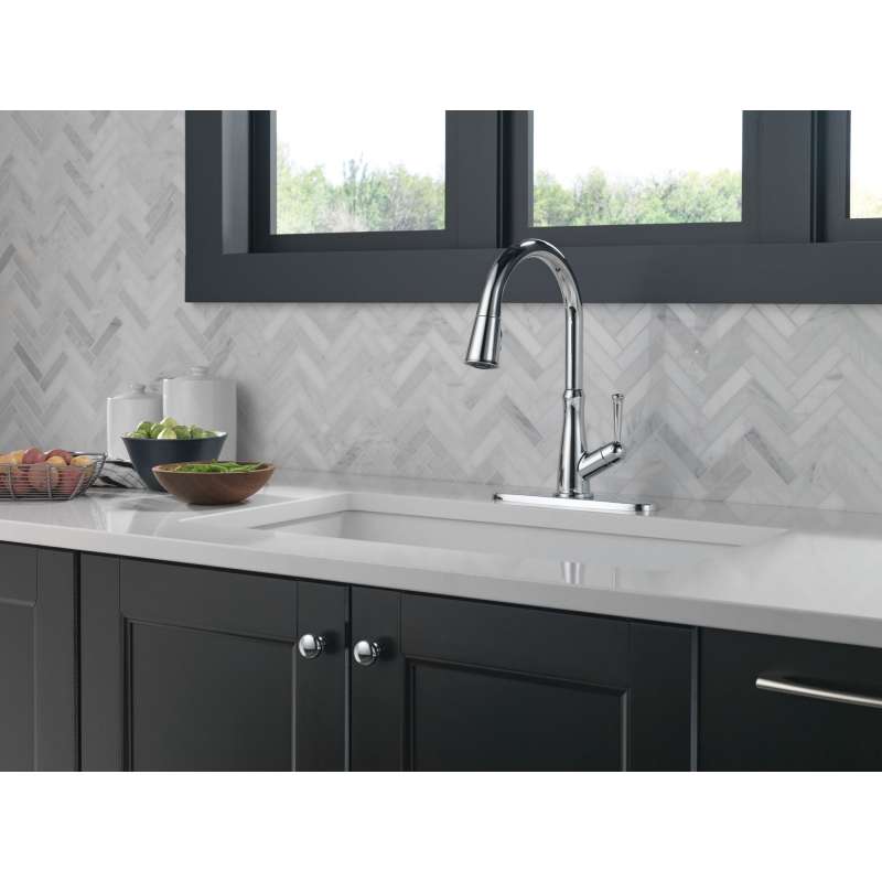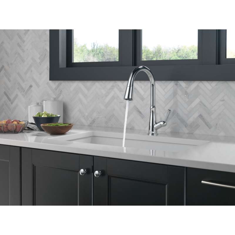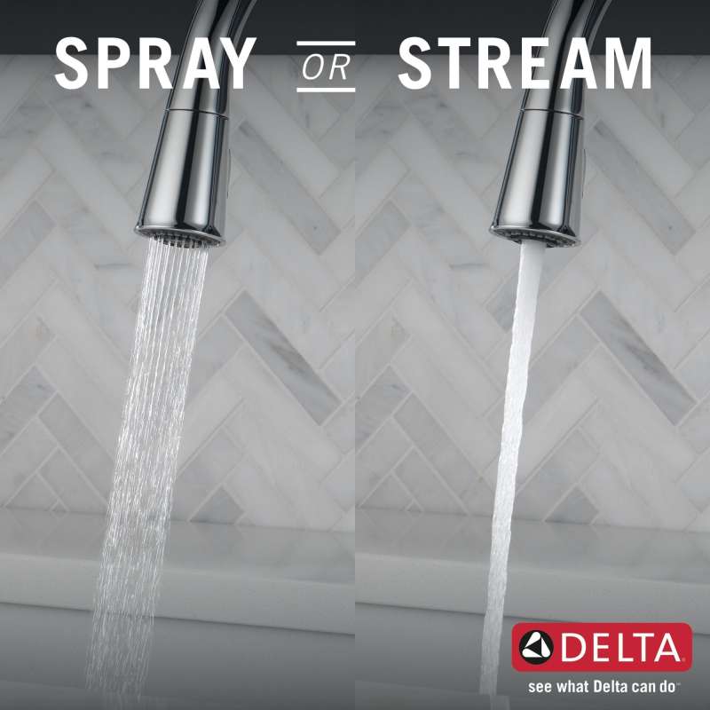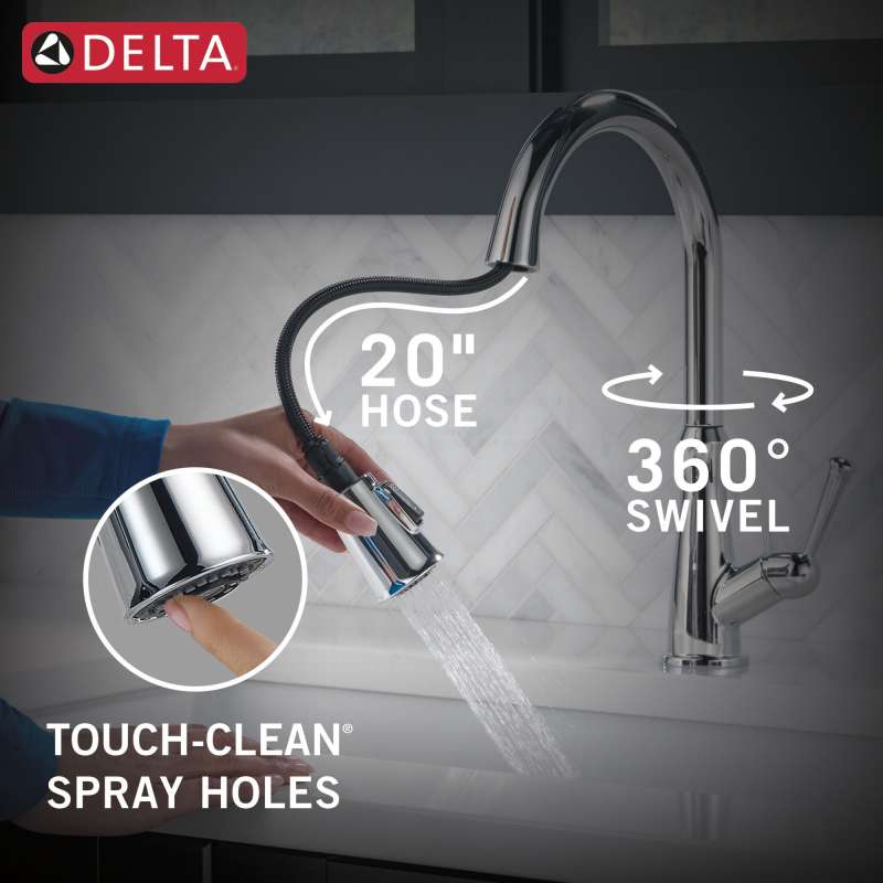 The westville pull-down kitchen faucet features a timeless design and meaningful features that enhance everyday use. Magnatite docking uses a powerful integrated magnet to set your pull-down sprayer precisely into place and hold it there so it stays docked when not in use. Kitchen sink faucets with touch-clean spray holes allow you to easily wipe away calcium and lime buildup with the touch of a finger. Delta kitchen faucets with diamond seal technology perform like new for life with a patented design that reduces leak points, is less hassle to install and lasts twice as long as the industry standard. You can install with confidence, knowing that delta kitchen faucets are backed by our lifetime limited warranty.