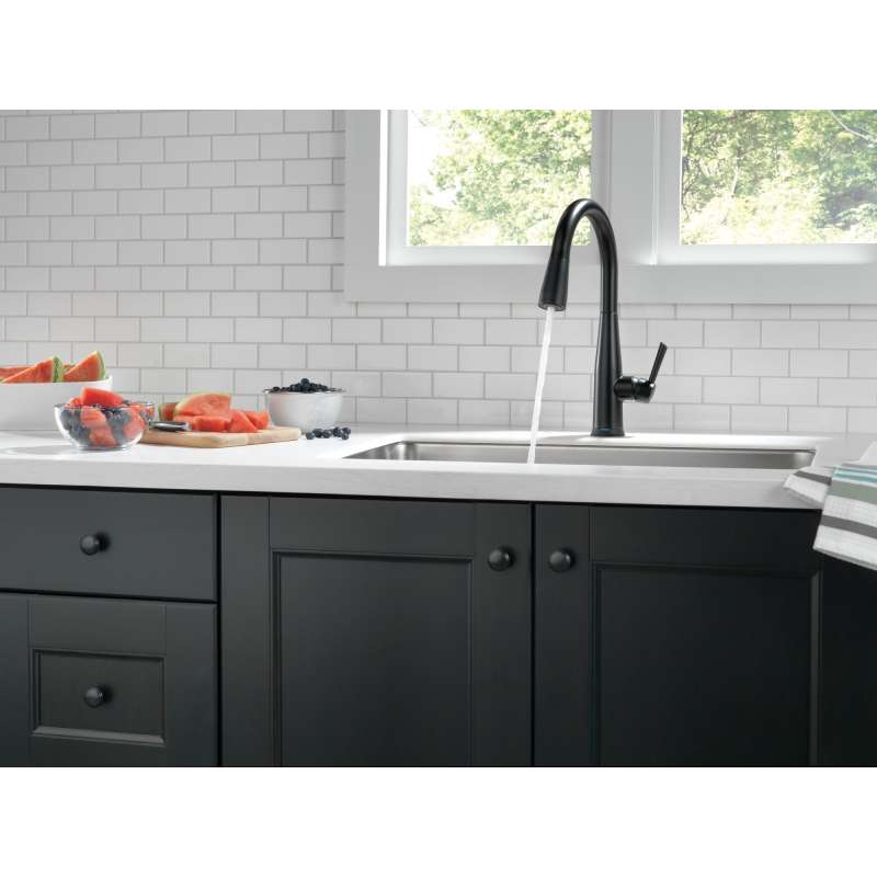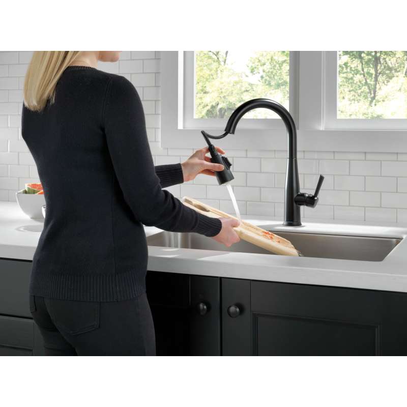 Delta voiceiq technology pairs with your connected home device to give you exactly the amount of water you need with features like metered dispensing and custom container commands. Simply ask your faucet to dispense one cup, six ounces, a gallon or just about any other amount you could need. Custom container commands make everyday tasks easier, like filling a coffee pot or dog bowl, while thoughtful features like water warm-up and voice-activated on/off lend a hand when yours are full. Take command of your kitchen with a voiceiq faucet: a revolutionary kitchen faucet that thinks on demand. This essa pull-down kitchen faucet is packed with functional features, like delta touch2o technology. A simple touch anywhere on the spout or handle with your wrist or forearm activates the flow of water at the temperature where your handle is set. The delta tempsense led light changes color to alert you to the water’s temperature and eliminates any possible surprises or discomfort. Kitchen sink faucets with touch-clean spray holes allow you to easily wipe away calcium and lime build-up with the touch of a finger. Delta kitchen faucets with diamond seal technology perform like new for life with a patented design which reduces leak points, is less hassle to install and lasts twice as long as the industry standard. Kitchen sink faucets with touch-clean spray holes allow you to easily wipe away calcium and lime build-up with the touch of a finger. You can install with confidence, knowing that delta kitchen faucets are backed by our lifetime limited warranty. Electronic parts are backed by our 5-year electronic parts warranty. Industry standard is based on asme a112.18.1 of 500,000 cycles.