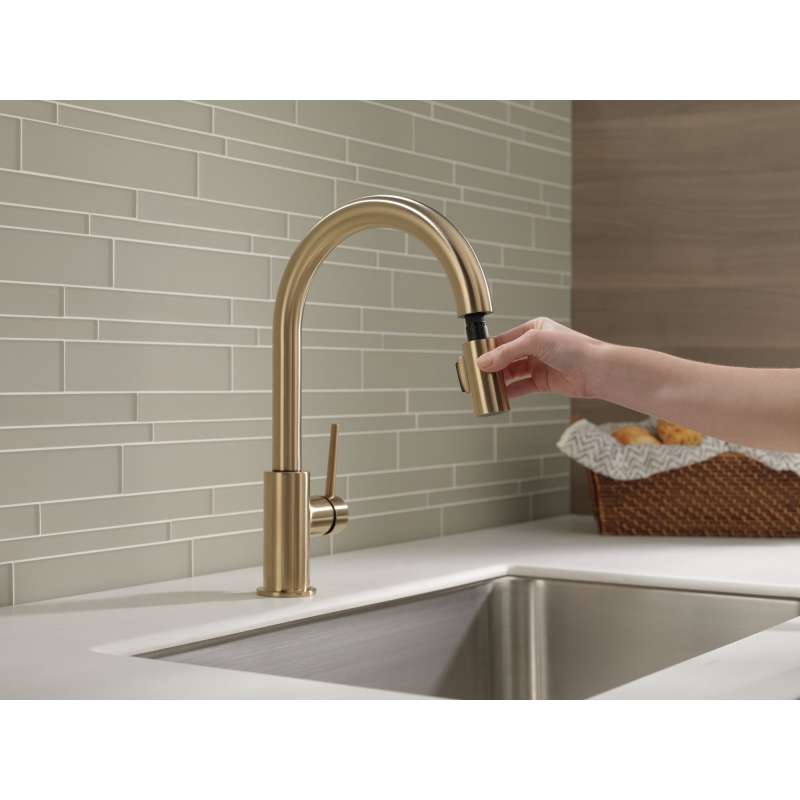 • 9159-CZLS-DST Trinsic Single Handle Pull Down Kitchen Limited Swivel, Champagne Bronze Champagne Bronze