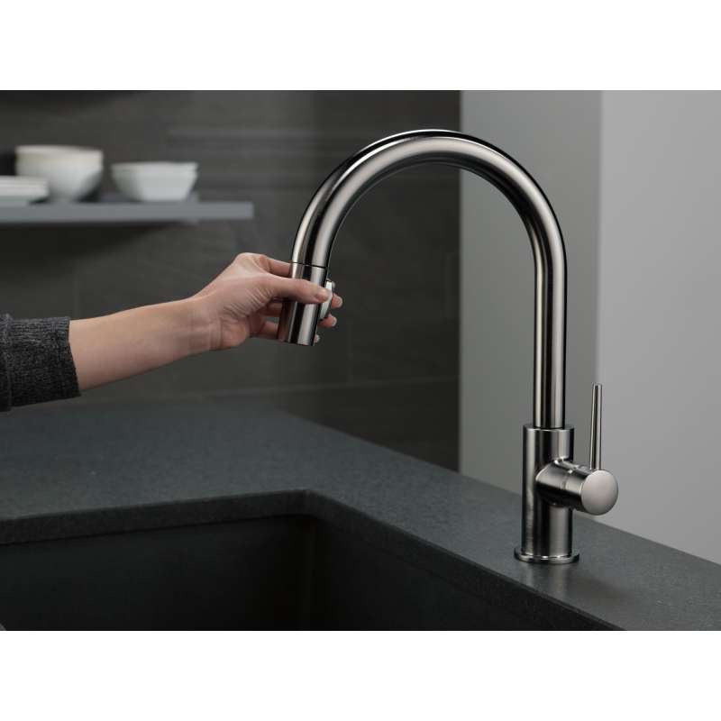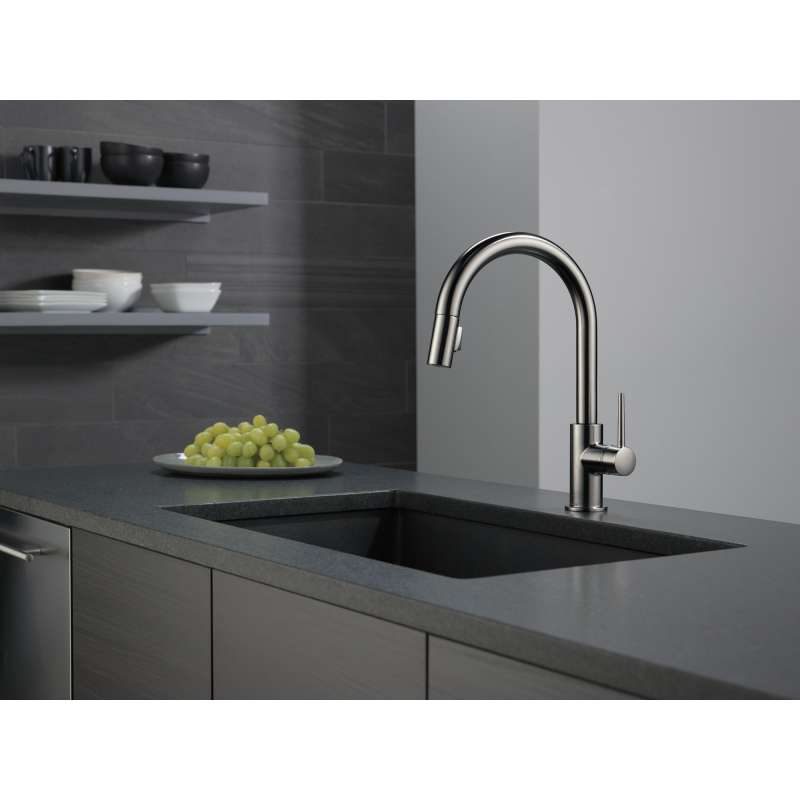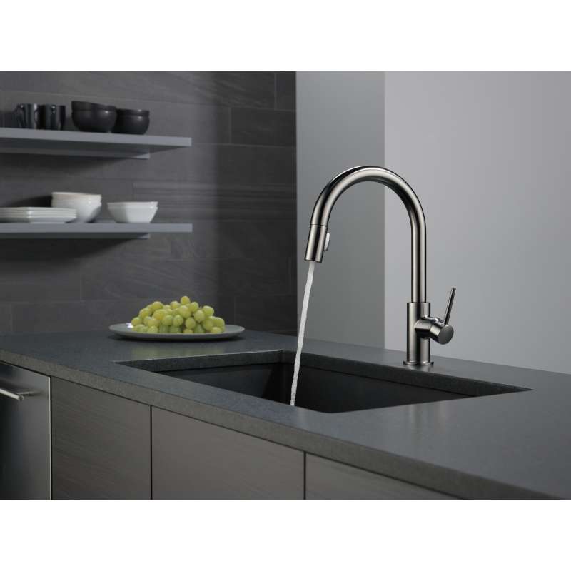 Delta magnatite docking uses a powerful integrated magnet to pull your faucet spray wand precisely into place and hold it there so it stays docked when not in use. Delta faucets with diamond seal technology perform like new for life with a patented design which reduces leak points, is less hassle to install and lasts twice as long as the industry standard. Kitchen faucets with touch-clean spray holes allow you to easily wipe away calcium and lime build-up with the touch of a finger. The spout features a limited swivel of 140° to help prevent accidental water flow outside sink. You can install with confidence, knowing that delta faucets are backed by our lifetime limited warranty. Industry standard is based on asme a112.18.1 of 500,000 cycles.