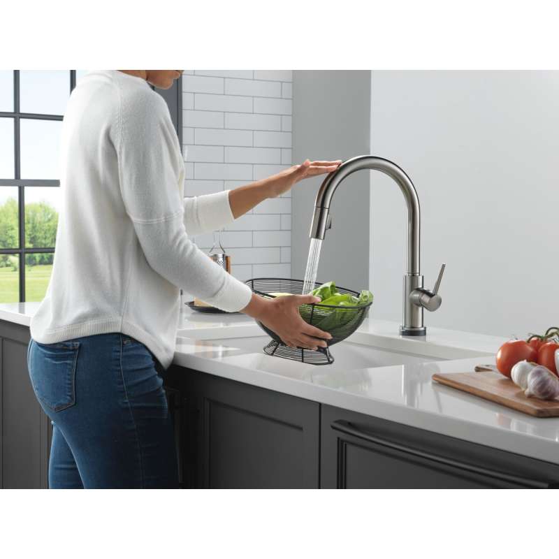The sleek elegance of modern design is embodied in the trinsic kitchen collection. Life moves fast, touchless technology keeps up. Delta touch2o faucets with touchless technology help keep germs and mess off your kitchen faucet and provides easy water control 3 ways: simply place your hand near the faucet, tap the faucet surface, or use standard handle activation. The tempsense led light changes color to alert you to the water’s temperature and eliminate any possible surprises or discomfort. Magnatite docking uses a powerful integrated magnet to pull your faucet spray wand precisely into place and hold it there so it stays docked when not in use. Delta faucets with diamond seal technology perform like new for life with a patented design which reduces leak points, is less hassle to install and lasts twice as long as the industry standard. You can install with confidence, knowing that delta faucets are backed by our lifetime limited warranty.
