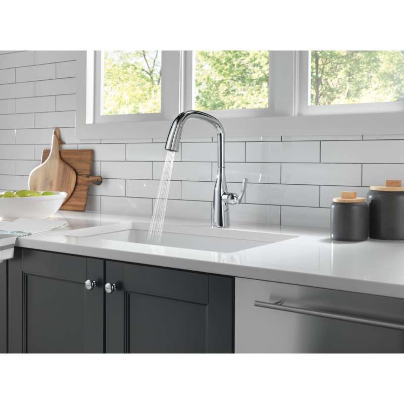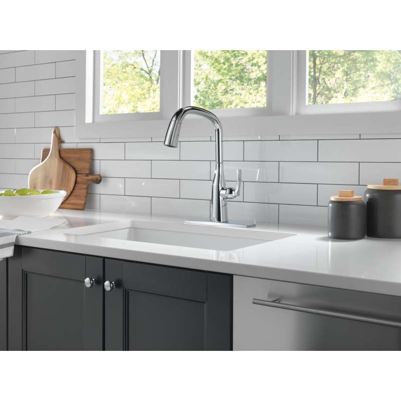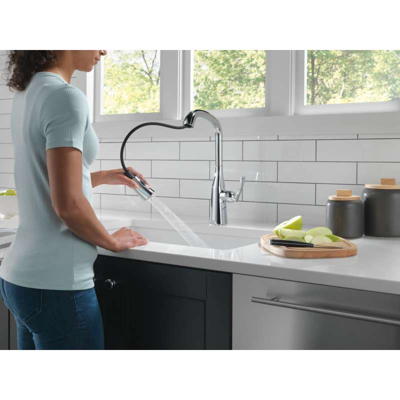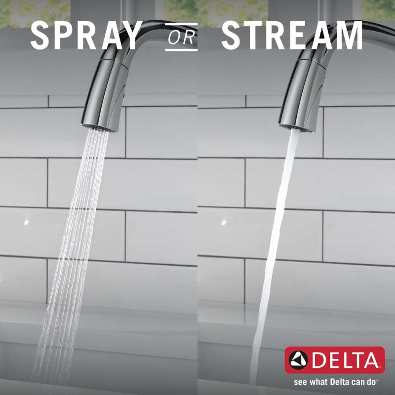 With subtly upturned spout and handles, stryke kitchen collection faucets radiate confidence and include thoughtful innovations to enhance everyday use. Delta magnatite docking uses a powerful integrated magnet to set your pull down sprayer precisely into place and hold it there so it stays docked when not in use. Delta lumicoat finishes are guaranteed to resist water spots and mineral buildup and easily wipe clean without the need for cleaners or chemicals. The ultra-sleek surface repels liquids, resisting water spots and staying cleaner longer, so your faucet stays beautiful. You can install with confidence, knowing that delta kitchen faucets are backed by our lifetime limited warranty.