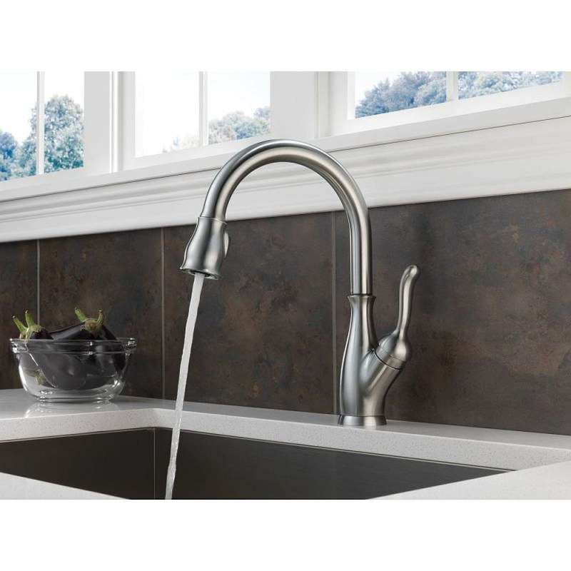 • Leland 9178-AR-DST Single Handle Pull-Down Kitchen Faucet in Arctic Stainless Arctic Stainless