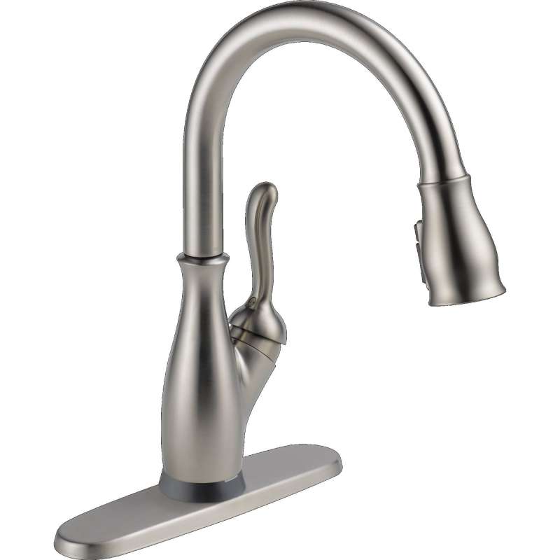 Traditional styling and modern functionality come together for a timeless look with the leland kitchen collection. Life moves fast, touchless technology keeps up. Delta touch2o faucets with touchless technology help keep germs and mess off your kitchen faucet and provides easy water control 3 ways: simply place your hand near the faucet, tap the faucet surface, or use standard handle activation. The tempsense led light changes color to alert you to the water’s temperature and eliminate any possible surprises or discomfort. Magnatite docking uses a powerful integrated magnet to pull your faucet spray wand precisely into place and hold it there so it stays docked when not in use. Spotshield technology helps to keep your kitchen faucet cleaner, longer by resisting water spots and fingerprints. Shieldspray technology cleans with laser-like precision while containing mess and splatter. A concentrated jet powers away stubborn messes while an innovative shield of water contains splatter and clears off the mess, so you can spend less time soaking, scrubbing and shirt swapping. Delta faucets with diamond seal technology perform like new for life with a patented design which reduces leak points, is less hassle to install and lasts twice as long as the industry standard. You can install with confidence, knowing that delta faucets are backed by our lifetime limited warranty.
