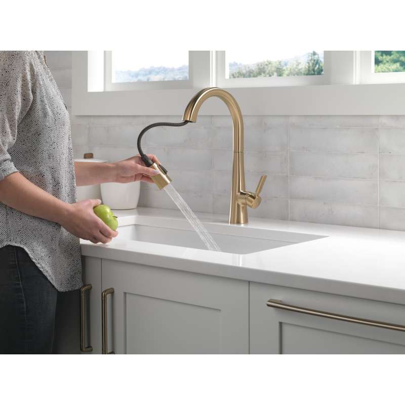 The monrovia kitchen collection stands out in any space with its statuesque form and striking handle design. Delta magnatite docking uses a powerful integrated magnet to set your pull down sprayer precisely into place and hold it there so it stays docked when not in use. Delta lumicoat finishes are guaranteed to resist water spots and mineral buildup and easily wipe clean without the need for cleaners or chemicals. The ultra-sleek surface repels liquids, resisting water spots and staying cleaner longer, so your faucet stays beautiful. You can install with confidence, knowing that delta kitchen faucets are backed by our lifetime limited warranty.