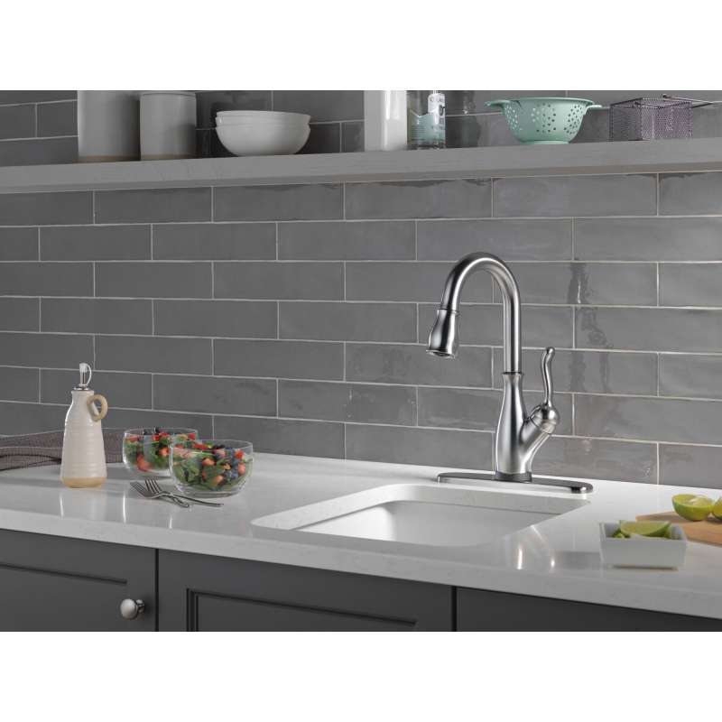 Traditional styling and modern functionality come together for a timeless look with the leland kitchen collection. Life moves fast, touchless technology keeps up. Delta touch2o faucets with touchless technology help keep germs and mess off your kitchen faucet and provides easy water control 3 ways: simply place your hand near the faucet, tap the faucet surface, or use standard handle activation. The tempsense led light changes color to alert you to the water’s temperature and eliminate any possible surprises or discomfort. Magnatite docking uses a powerful integrated magnet to pull your faucet spray wand precisely into place and hold it there so it stays docked when not in use. Delta faucets with diamond seal technology perform like new for life with a patented design which reduces leak points, is less hassle to install and lasts twice as long as the industry standard. You can install with confidence, knowing that delta faucets are backed by our lifetime limited warranty.