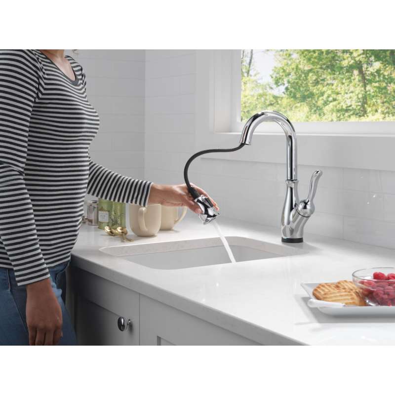Traditional styling and modern functionality come together for a timeless look with the leland kitchen collection. Life moves fast, touchless technology keeps up. Delta touch2o faucets with touchless technology help keep germs and mess off your kitchen faucet and provides easy water control 3 ways: simply place your hand near the faucet, tap the faucet surface, or use standard handle activation. The tempsense led light changes color to alert you to the water’s temperature and eliminate any possible surprises or discomfort. Magnatite docking uses a powerful integrated magnet to pull your faucet spray wand precisely into place and hold it there so it stays docked when not in use. Delta faucets with diamond seal technology perform like new for life with a patented design which reduces leak points, is less hassle to install and lasts twice as long as the industry standard. You can install with confidence, knowing that delta faucets are backed by our lifetime limited warranty.