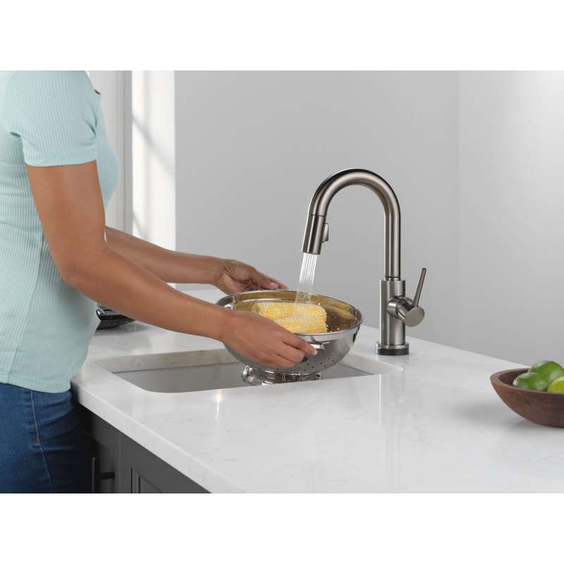 The sleek elegance of modern design is embodied in the trinsic kitchen collection. Life moves fast, touchless technology keeps up. Delta touch2o faucets with touchless technology help keep germs and mess off your kitchen faucet and provides easy water control 3 ways: simply place your hand near the faucet, tap the faucet surface, or use standard handle activation. The tempsense led light changes color to alert you to the water’s temperature and eliminate any possible surprises or discomfort. Magnatite docking uses a powerful integrated magnet to pull your faucet spray wand precisely into place and hold it there so it stays docked when not in use. Delta faucets with diamond seal technology perform like new for life with a patented design which reduces leak points, is less hassle to install and lasts twice as long as the industry standard. You can install with confidence, knowing that delta faucets are backed by our lifetime limited warranty.