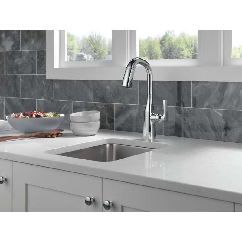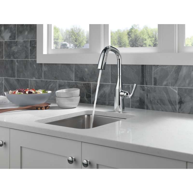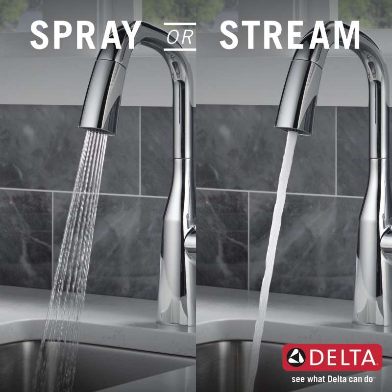With subtly upturned spout and handles, stryke kitchen collection faucets radiate confidence and include thoughtful innovations to enhance everyday use. Delta magnatite docking uses a powerful integrated magnet to set your pull down sprayer precisely into place and hold it there so it stays docked when not in use. Delta lumicoat finishes are guaranteed to resist water spots and mineral buildup and easily wipe clean without the need for cleaners or chemicals. The ultra-sleek surface repels liquids, resisting water spots and staying cleaner longer, so your faucet stays beautiful. You can install with confidence, knowing that delta kitchen faucets are backed by our lifetime limited warranty.