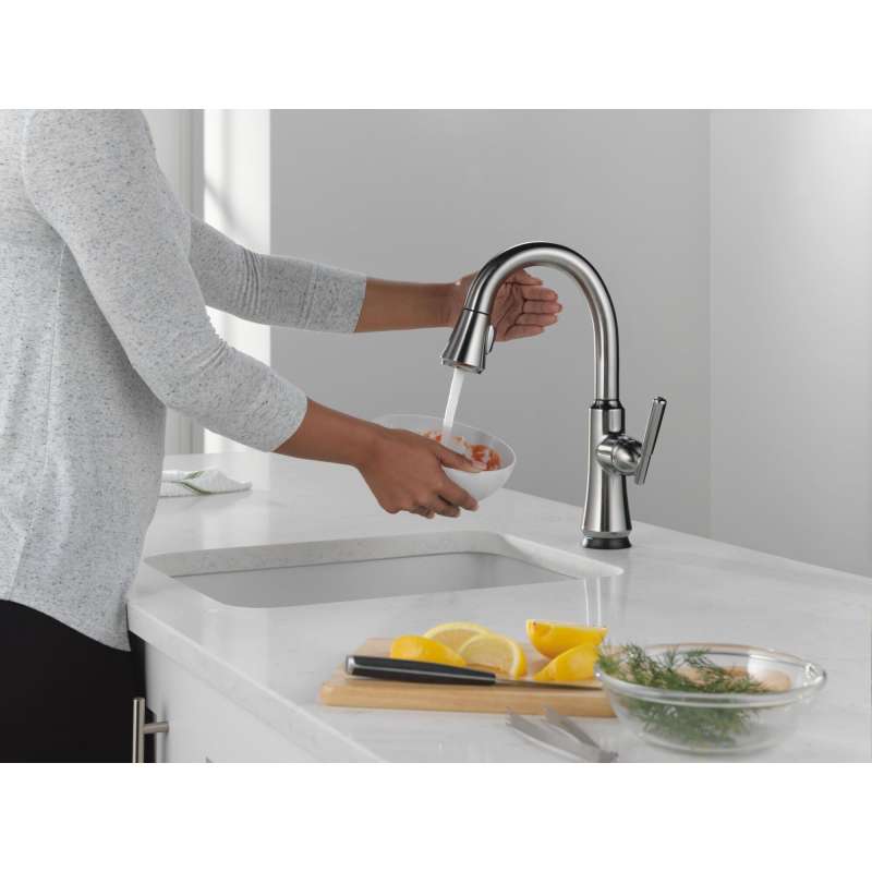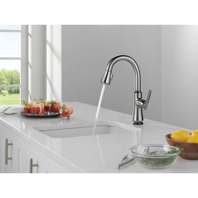 A contemporary take on traditional styling, the coranto kitchen collection brings everyday refinement to a space with subtle design details. Life moves fast, touchless technology keeps up. Delta touch2o faucets with touchless technology help keep germs and mess off your kitchen faucet and provides easy water control 3 ways: simply place your hand near the faucet, tap the faucet surface, or use standard handle activation. The tempsense led light changes color to alert you to the water’s temperature and eliminate any possible surprises or discomfort. Magnatite docking uses a powerful integrated magnet to pull your faucet spray wand precisely into place and hold it there so it stays docked when not in use. Delta faucets with diamond seal technology perform like new for life with a patented design which reduces leak points, is less hassle to install and lasts twice as long as the industry standard. You can install with confidence, knowing that delta faucets are backed by our lifetime limited warranty.