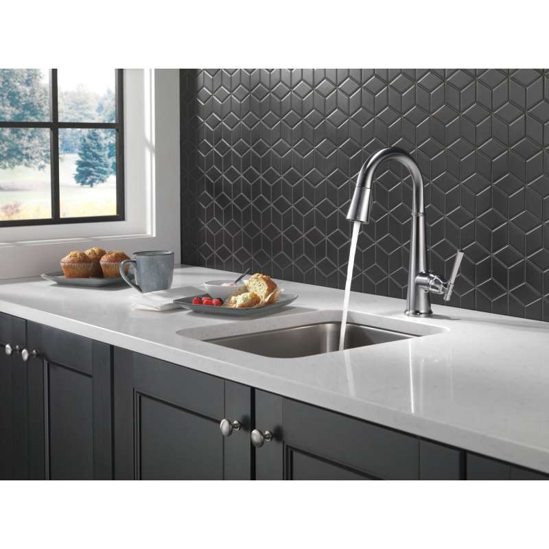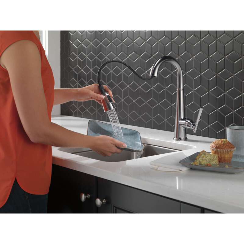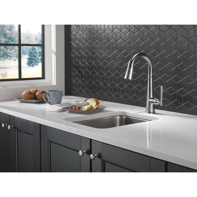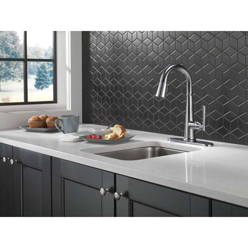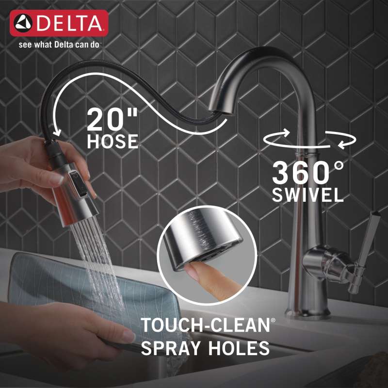 The defined ridges of the emmeline kitchen collection’s diamond-shaped spout cut a streamlined profile, balanced by captivating details that lend an elemental sense of old-world flair. Kitchen sink faucets with touch-clean spray holes allow you to easily wipe away calcium and lime build-up with the touch of a finger. Delta lumicoat finishes are guaranteed to resist water spots and mineral buildup and easily wipe clean without the need for cleaners or chemicals. The ultra-sleek surface repels liquids, resisting water spots and staying cleaner longer, so your faucet stays beautiful. Delta kitchen faucets with diamond seal technology perform like new for life with a patented design which reduces leak points, is less hassle to install and lasts twice as long as the industry standard. You can install with confidence, knowing that delta kitchen faucets are backed by our lifetime limited warranty.