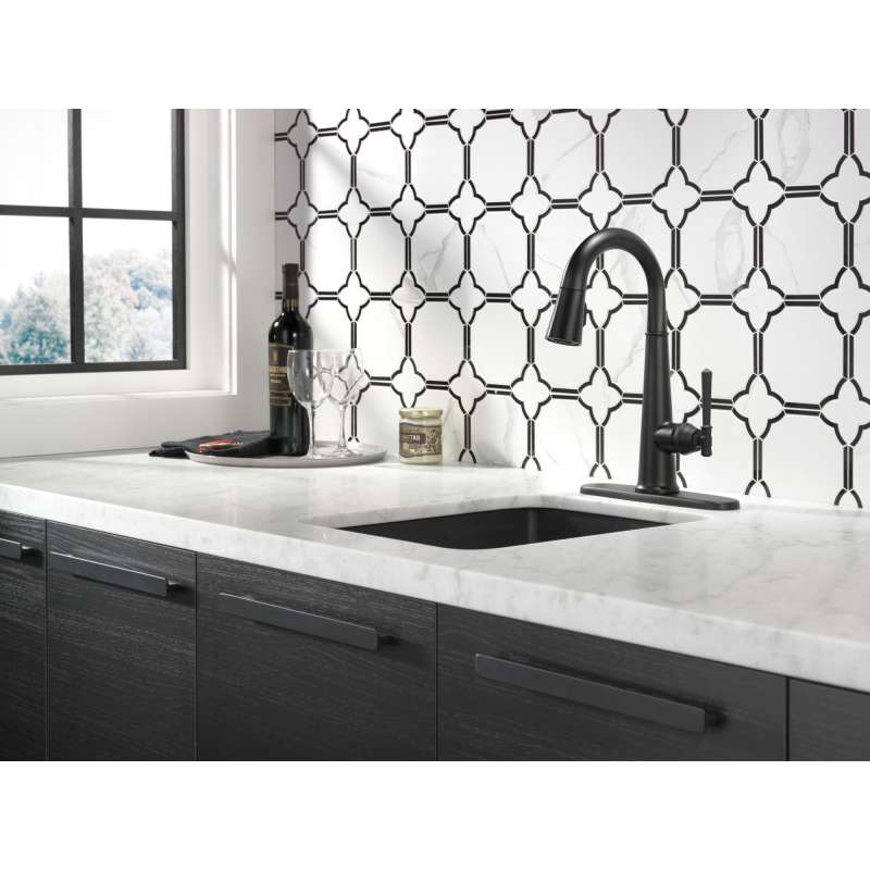 • 9982-BL-DST Emmeline Single Handle Pull Down Bar or Prep Faucet, Matte Black Matte Black