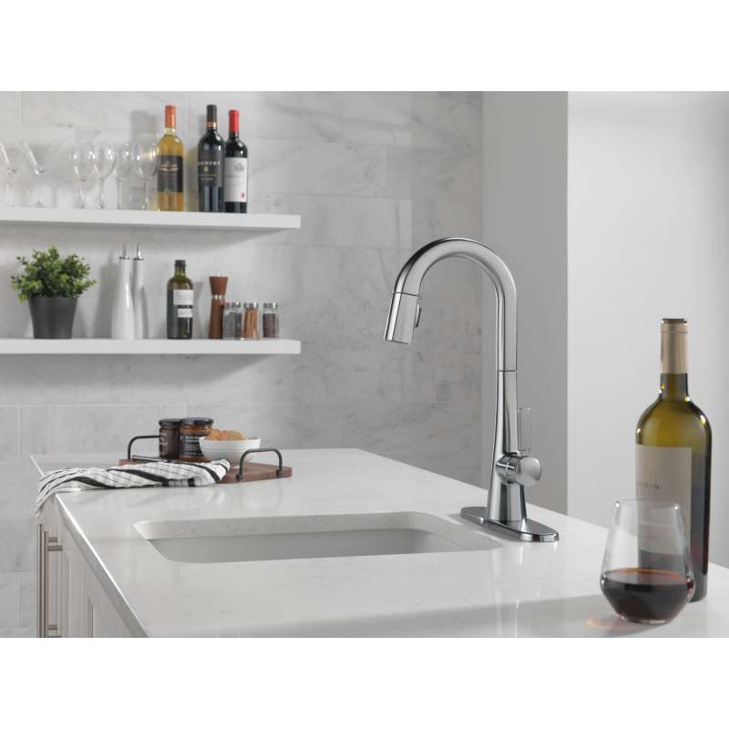 The monrovia kitchen collection stands out in any space with its statuesque form and striking handle design. Delta magnatite docking uses a powerful integrated magnet to set your pull down sprayer precisely into place and hold it there so it stays docked when not in use. Delta lumicoat finishes are guaranteed to resist water spots and mineral buildup and easily wipe clean without the need for cleaners or chemicals. The ultra-sleek surface repels liquids, resisting water spots and staying cleaner longer, so your faucet stays beautiful. You can install with confidence, knowing that delta kitchen faucets are backed by our lifetime limited warranty.