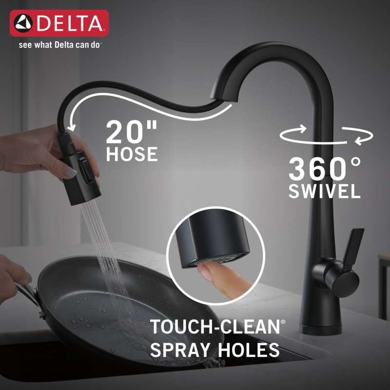 The monrovia kitchen collection stands out in any space with its statuesque form and striking handle design. Touch it on. Touch it off. Whether you have two full hands or 10 messy fingers, delta touch2o technology helps keep your kitchen faucet clean, even when your hands aren’t. A simple touch anywhere on the spout or handle with your wrist or forearm activates the flow of water at the temperature where your handle is set. The delta tempsense led light changes color to alert you to the water’s temperature and eliminates any possible surprises or discomfort. You can install with confidence, knowing that delta kitchen faucets are backed by our lifetime limited warranty. Electronic parts are backed by our 5-year electronic parts warranty.