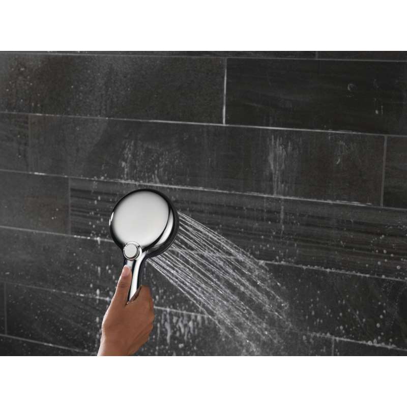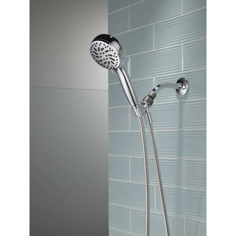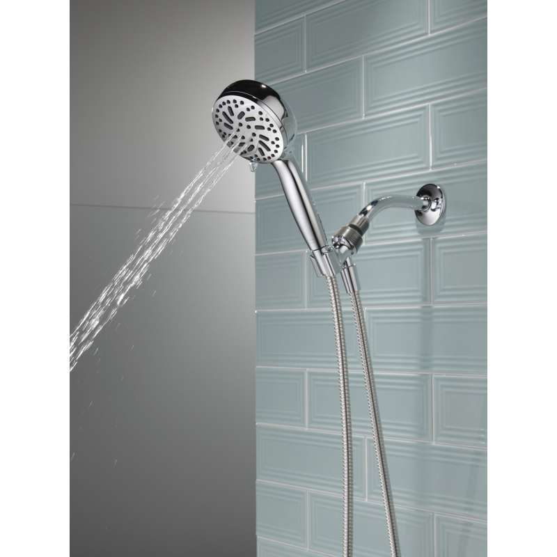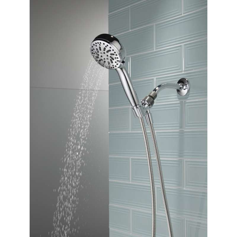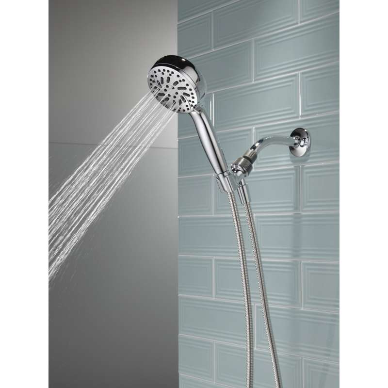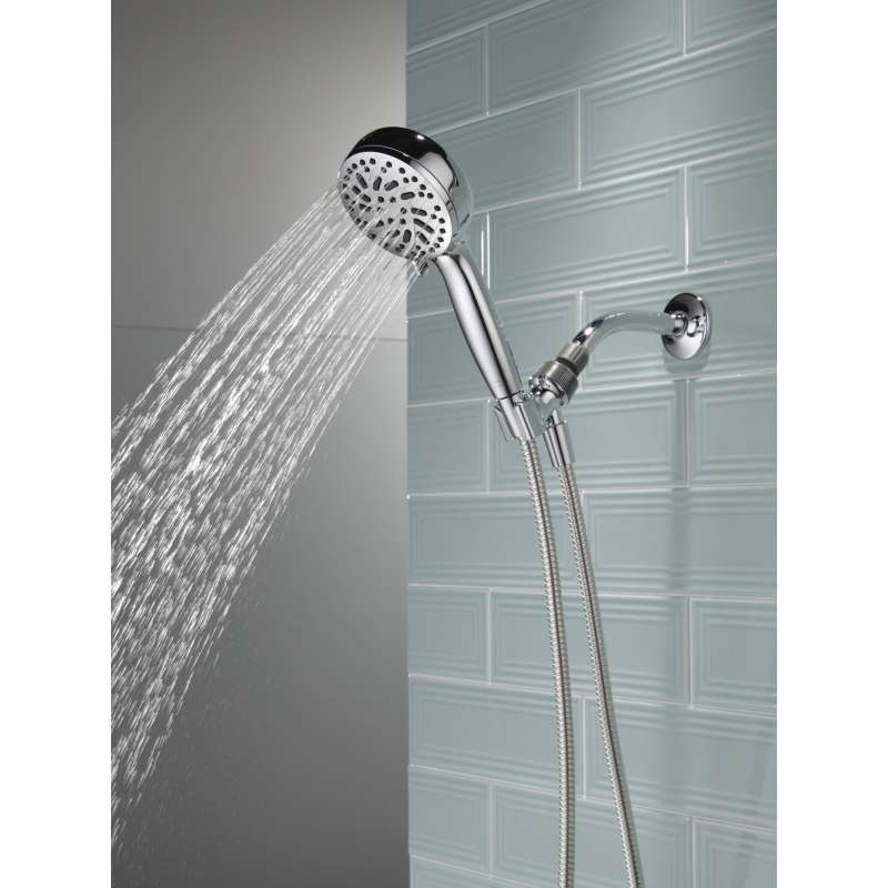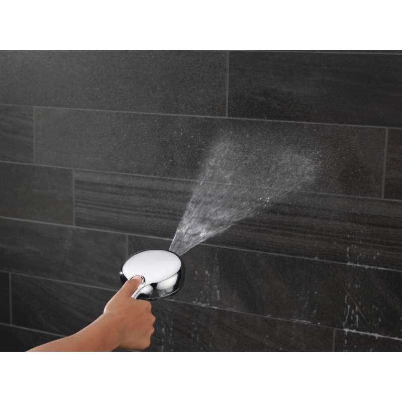 The Delta ProClean Hand Shower cleans shower surfaces at least two times faster than standard sprays, powering off soap scum and shower messes. Perfect for a DIY upgrade, the ProClean Hand Shower makes it easier to keep your shower and tile clean and reduce soap scum buildup with regular use. The focused, wide fan spray allows you to easily clean hard-to-reach places without stepping foot in the shower. The pause setting gives you ample space for shaving, lathering and other shower tasks, then easily restarts the water with the temperature where you left off to help conserve water and not deplete your hot water supply. While other products may gather unsightly mineral buildup over time, soft rubber Touch-Clean spray holes allow any mineral residue to simply be wiped away for an instantly refreshed look — with no need for soaking or the aid of chemical cleaners. WaterSense labeled hand showers use at least 20% less water than the industry standard — helping you save water without compromising performance. You can install with confidence, knowing Delta products are backed by our Lifetime Limited Warranty.