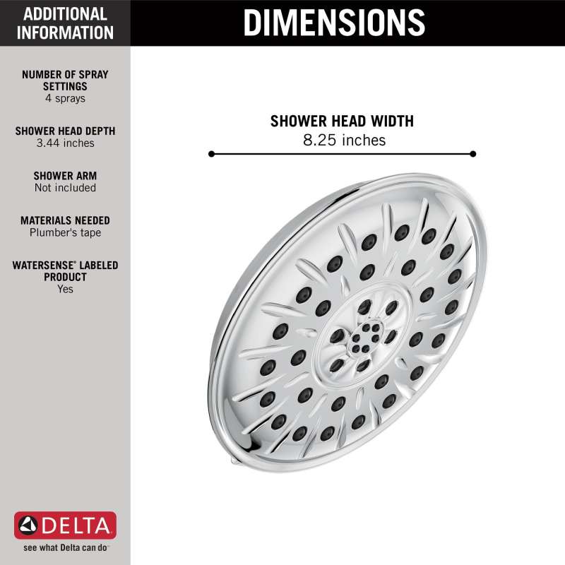 Replacing your shower head is one of the quickest, simplest upgrades you can make to your shower. Our shower heads feature a wide range of styles and innovations, and install in less than 20 minutes - no special tools required. Delta H2Okinetic PowerDrench Showers look different because they are different. H2Okinetic showers are powered by an innovative technology that sculpts the water into a unique wave pattern, giving you the feeling of more water without using more water and creating a shower with more warmth, coverage and intensity. So go ahead and indulge, because now you can enjoy the feeling of more water without using more water. UltraSoak Spray mimics dense natural rainfall to provide an intensely saturating shower. Using advanced water-sculpting chips, they generate a cascade of water drops that saturate and soothe in a shower that feels like more water. Step into the storm and step back out feeling relaxed and rejuvenated. The pause setting gives you ample space for shaving, lathering and other shower tasks, without worrying about overspray or water waste. This spray setting helps you conserve water, so you can worry less about depleting your supply of hot water - and you help the environment too. Delta WaterSense labeled faucets, showers and toilets use at least 20% less water than the industry standard—saving you money without compromising performance.