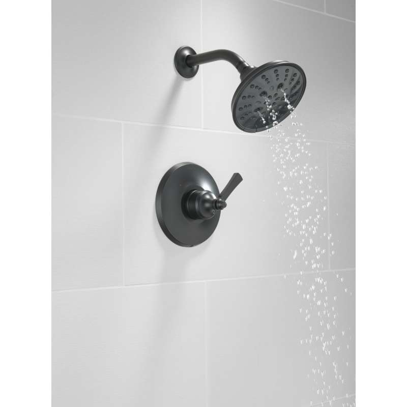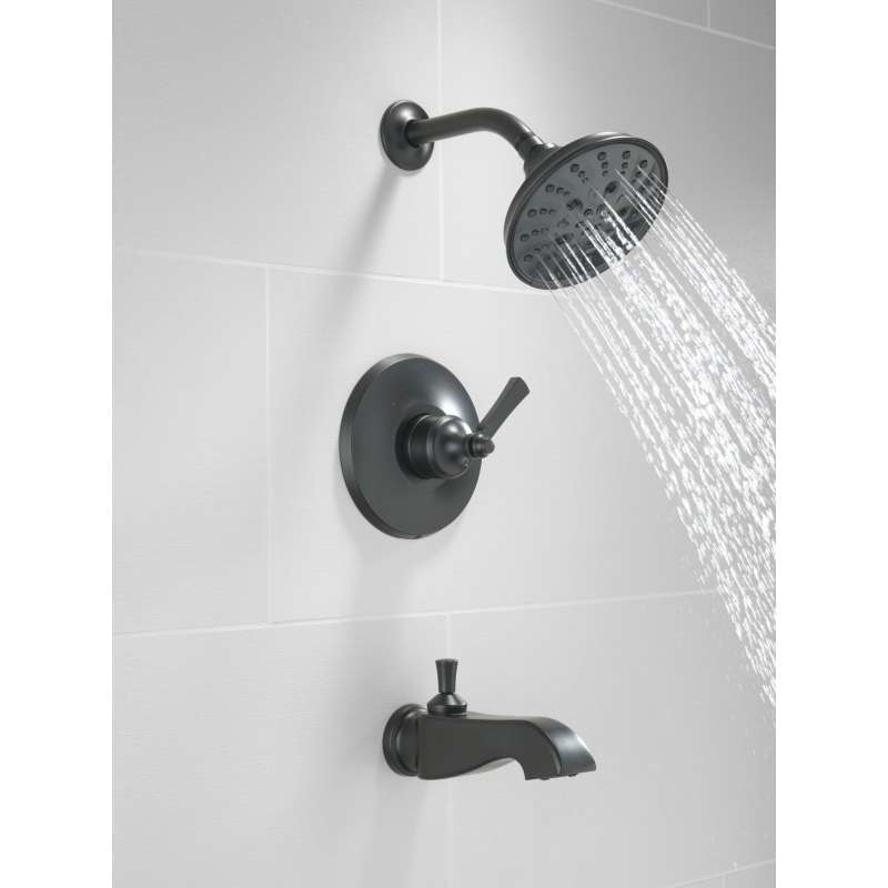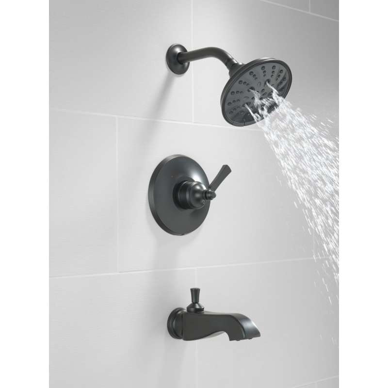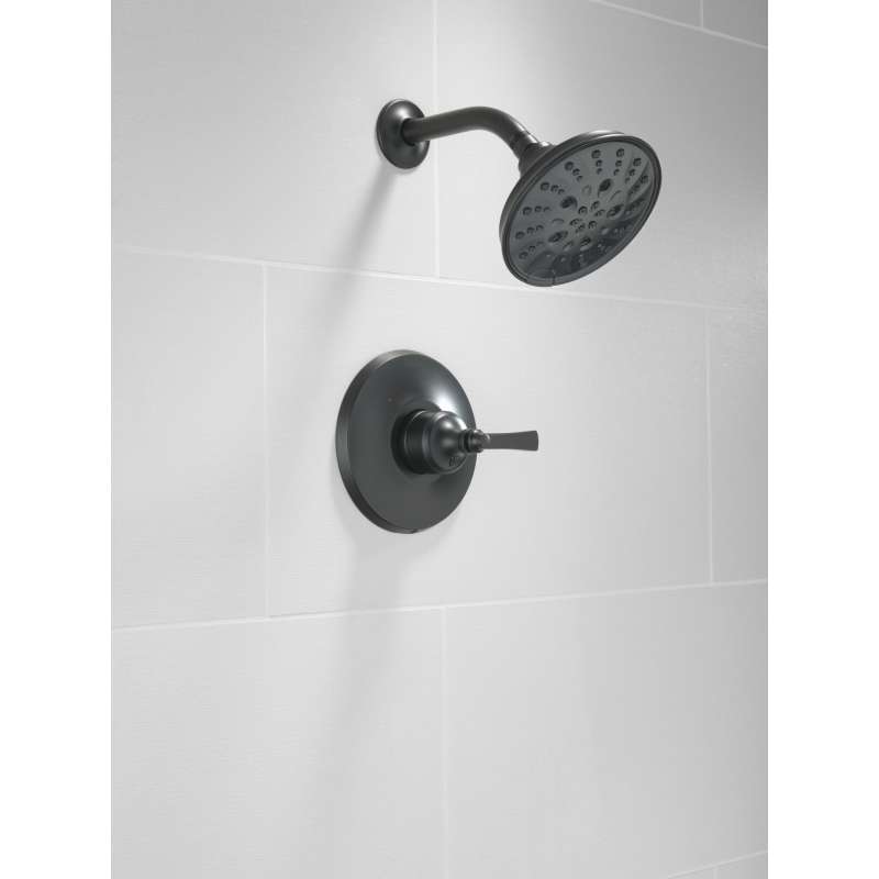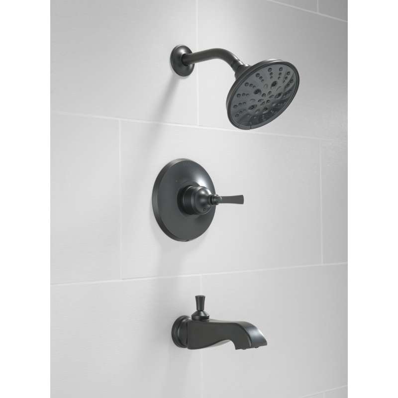 The dorval bathroom collection diverges from conventional expectations with regal accents and a powerful design that commands your attention. Inspired by the feminine lines of french architecture and the regal stature of german castles, the dorval bath collection balances grace and power in this modern take on new traditional design. This single lever handle kit may be used with dorval single handle tub/shower faucets. Easy to install, simply fit the handle over the stem unit and secure with the included set screw and allen wrench. You can install with confidence, knowing that delta backs this handle kit with a lifetime limited warranty.