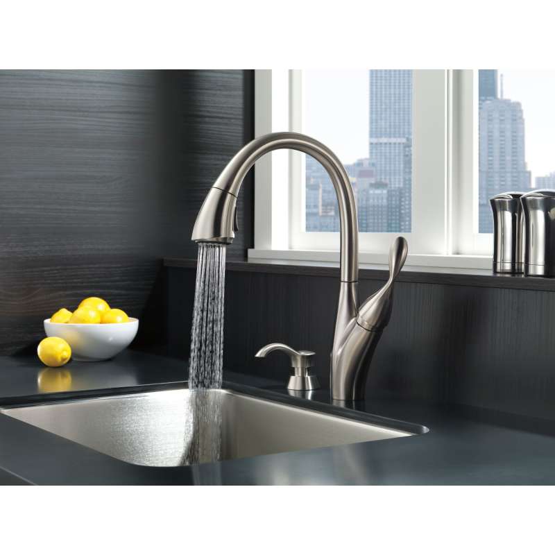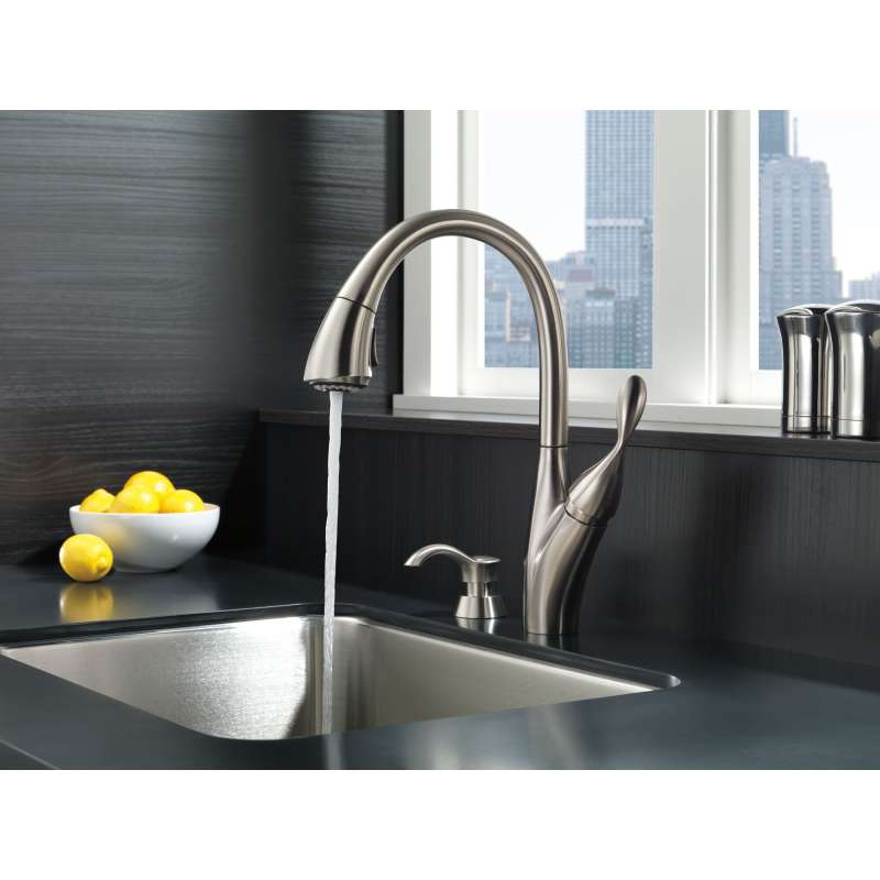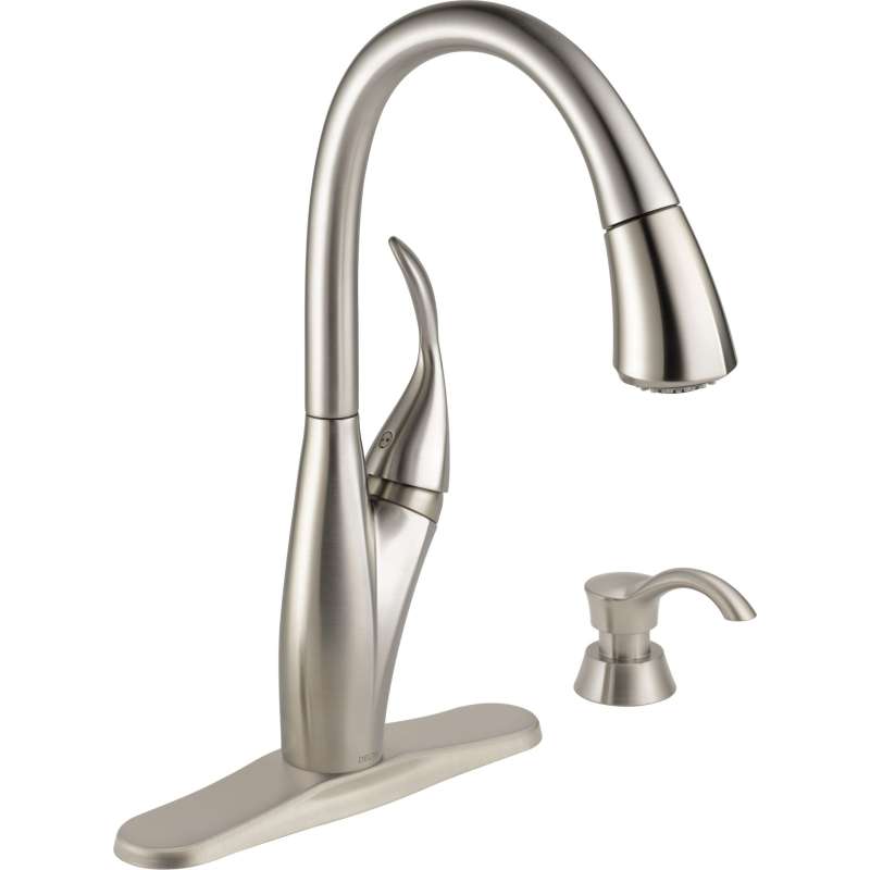 The smooth, timeless style and quality design of this berkley pull-down kitchen faucet make it a perfect fit for any home. Delta magnatite docking uses a powerful integrated magnet to pull your faucet spray wand precisely into place and hold it there so it stays docked when not in use. Delta shieldspray technology cleans with laser-like precision while containing mess and splatter. A concentrated jet powers away stubborn messes while an innovative shield of water contains splatter and clears off the mess, so you can spend less time soaking, scrubbing and shirt swapping. Delta spotshield technology helps to keep your faucet cleaner, longer by resisting water spots and fingerprints. Keep your space spotless with spotshield technology, available across a variety of finishes for the kitchen and bath. Delta faucets with diamond seal technology perform like new for life with a patented design which reduces leak points, is less hassle to install and lasts twice as long as the industry standard. Kitchen faucets with touch-clean spray holes allow you to easily wipe away calcium and lime build-up with the touch of a finger. You can install with confidence, knowing that delta faucets are backed by our lifetime limited warranty. Industry standard is based on asme a112.18.1 of 500,000 cycles.