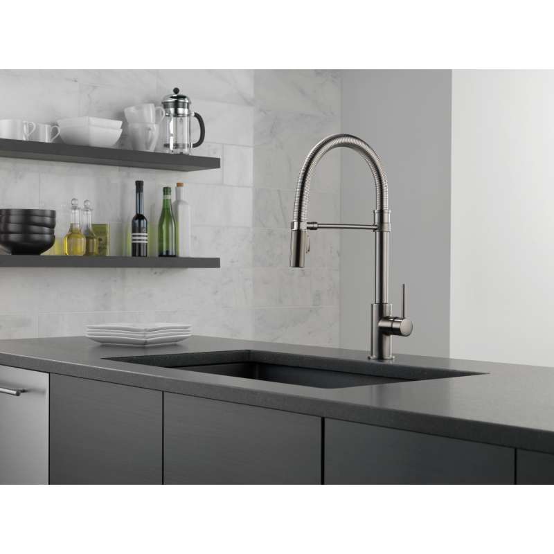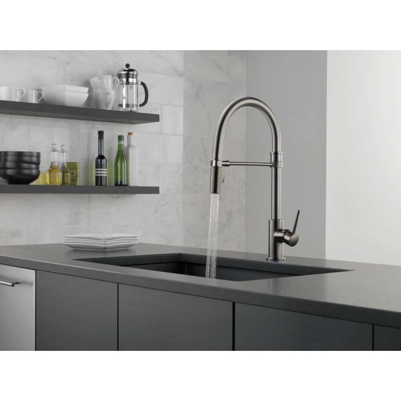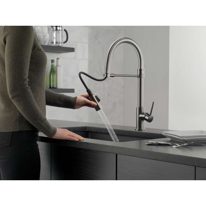 9659-KS-DST Trinsic Single Handle Pull Down Spring Kitchen Faucet, Black Stainless