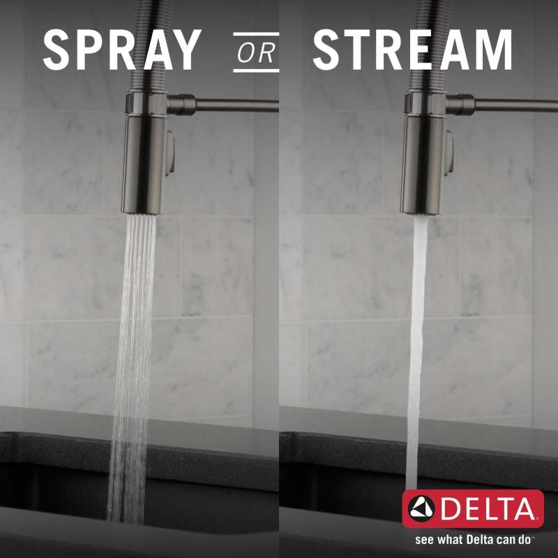 Delta magnatite docking uses a powerful integrated magnet to pull your faucet spray wand precisely into place and hold it there so it stays docked when not in use. Delta faucets with diamond seal technology perform like new for life with a patented design which reduces leak points, is less hassle to install and lasts twice as long as the industry standard. Kitchen faucets with touch-clean spray holes allow you to easily wipe away calcium and lime build-up with the touch of a finger. You can install with confidence, knowing that delta faucets are backed by our lifetime limited warranty. Industry standard is based on asme a112.18.1 of 500,000 cycles.