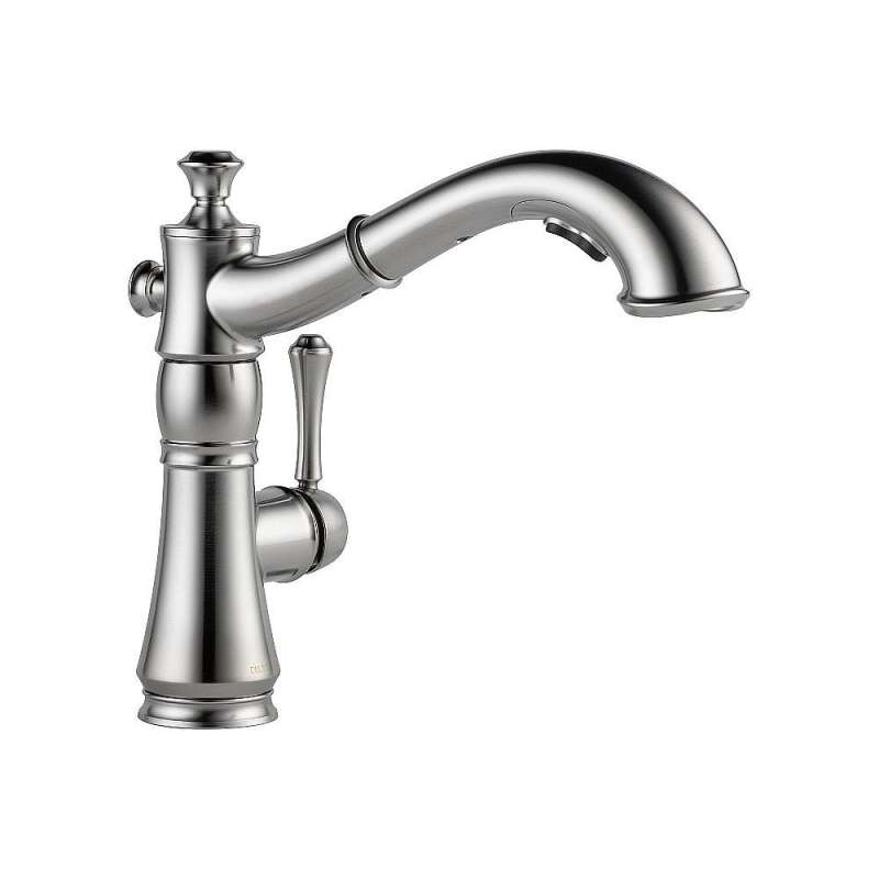 - Pull-out spout swivels 120-degree for added convenience