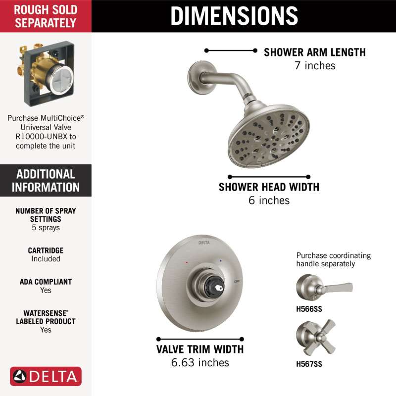 The dorval bathroom collection diverges from conventional expectations with regal accents and a powerful design that commands your attention. Inspired by the feminine lines of french architecture and the regal stature of german castles, the dorval bath collection balances grace and power in this modern take on new traditional design. Delta h2okinetic showers look different because they are different. Using advanced technology, h2okinetic showers sculpt water into a unique wave pattern, giving you 3x the coverage of a standard shower head. The end result is a shower that provides more coverage, more warmth and more intensity for a truly drenching shower experience. The pause setting gives you ample space for shaving, lathering and other shower tasks, then easily restarts the water with the temperature where you left off. This spray setting helps you conserve water, so you can worry less about depleting your supply of hot water - and you help the environment too. Delta pressure-balance valves use monitor technology to protect you and your family from sudden temperature changes. Delta watersense labeled faucets, showers and toilets use at least 20% less water than the industry standard—saving you money without compromising performance.