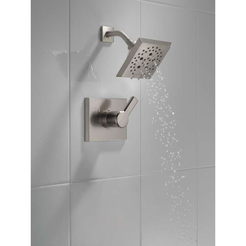 The confident slant of the pivotal bath collection makes it a striking addition to a bathroom's contemporary geometry for a look that makes a statement. Delta showers with monitor pressure-balance valves are engineered to make sure you don’t experience a sudden and possibly unsafe change in water temperature as a result of running water elsewhere, such as using a dishwasher, flushing a toilet or running a washing machine. Our h2okinetic showers look different because they are different. H2okinetic showers are powered by an innovative technology that sculpts the water into a unique wave pattern, giving you the feeling of more water and water pressure. You can install with confidence, knowing that delta showers are backed by our lifetime limited warranty.