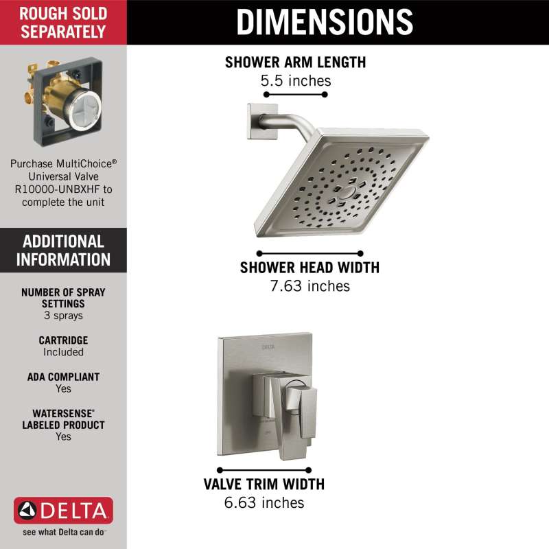 The prismatic faceting of the trillian bath collection is an evolution of modern style that creates an edgy look which catches the light as well as the eye. Delta showers with monitor pressure-balance valves are engineered to make sure you don’t experience a sudden and possibly unsafe change in water temperature as a result of running water elsewhere, such as using a dishwasher, flushing a toilet or running a washing machine. With separate handles for volume and temperature control, this delta shower provides a more refined showering experience. Simply set the water at your preferred temperature and turn the shower on or off with the volume control handle — without interrupting your set temperature. You can install with confidence, knowing that delta showers are backed by our lifetime limited warranty.