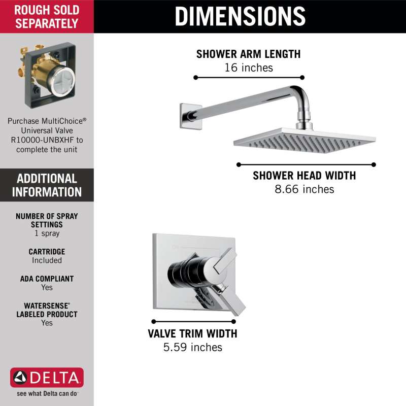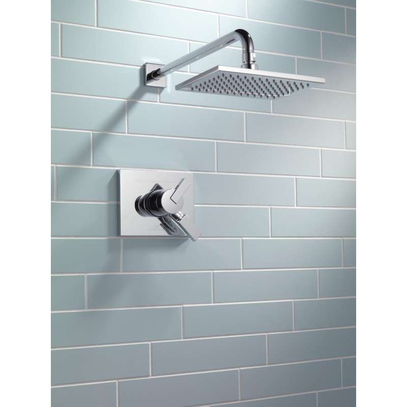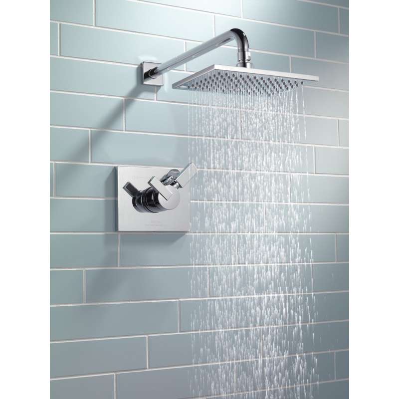 Inspired by the slim lines and graceful arc of a ribbon, the vero bath collection offers a high-end, modern look. With separate handles for volume and temperature control, this delta tub/shower provides a more refined showering experience. Simply set the water at your preferred temperature and turn the shower on or off with the volume control handle - without interrupting your set temperature. While other products may gather unsightly mineral build-up over time, delta soft rubber touch-clean spray holes allow any mineral residue to simply be wiped away for an instantly refreshed look – with no need for soaking or the aid of chemical cleaners. Delta pressure-balance valves use monitor technology to protect you and your family from sudden temperature changes. Chrome has rapidly become one of the most popular finishes across décor styles in the bath thanks to its stunning gloss and innate versatility. Paired with crisp lines and bright whites, it creates a bold, modern contrast, but it works equally well with vintage styles and traditional spaces to convey a hint of nostalgia.