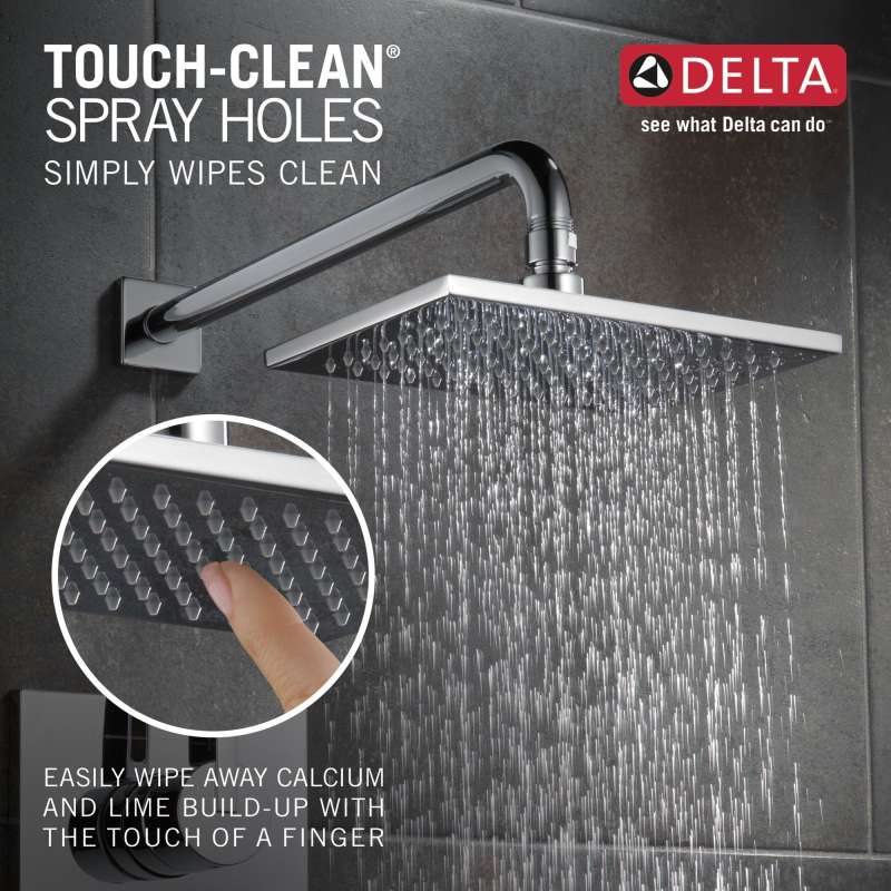 - Soft, rubber touch-clean spray holes allow you to easily wipe away calcium and lime build-up from the spray face of your shower head and hand shower with the touch of a finger.