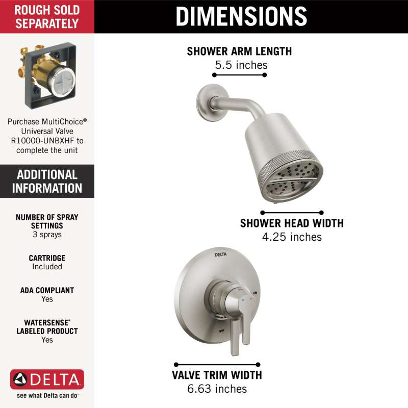 With a design inspired by the shape of sailboats, the galeon bath collection brings a chiseled, contemporary look into the bath. Delta showers with monitor pressure-balance valves are engineered to make sure you don’t experience a sudden and possibly unsafe change in water temperature as a result of running water elsewhere, such as using a dishwasher, flushing a toilet or running a washing machine. With separate handles for volume and temperature control, this delta shower provides a more refined showering experience. Simply set the water at your preferred temperature and turn the shower on or off with the volume control handle — without interrupting your set temperature. You can install with confidence, knowing that delta showers are backed by our lifetime limited warranty.