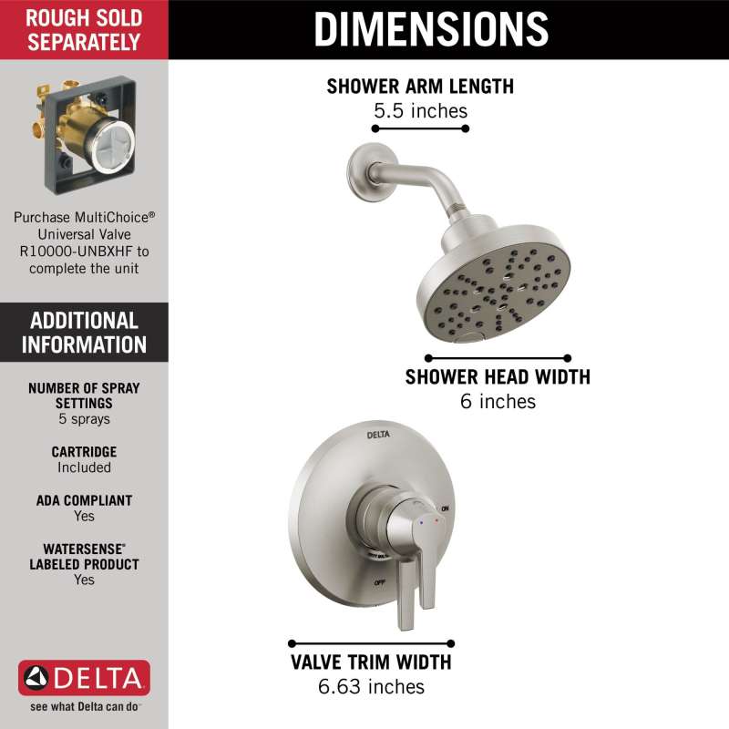 With a design inspired by the shape of sailboats, the galeon bath collection brings a chiseled, contemporary look into the bath. Delta showers with monitor pressure-balance valves are engineered to make sure you don’t experience a sudden and possibly unsafe change in water temperature as a result of running water elsewhere, such as using a dishwasher, flushing a toilet or running a washing machine. With separate handles for volume and temperature control, this delta shower provides a more refined showering experience. Simply set the water at your preferred temperature and turn the shower on or off with the volume control handle — without interrupting your set temperature. You can install with confidence, knowing that delta showers are backed by our lifetime limited warranty.
