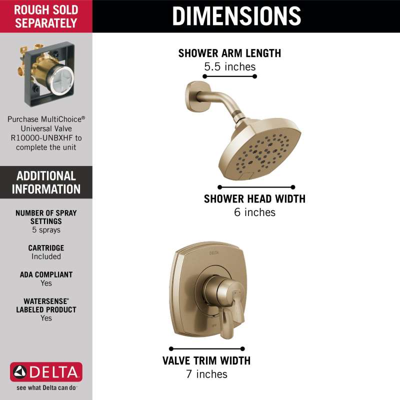 With subtly upturned spout and handles, the stryke bath collection radiates confidence and composure with an assured stature and ascending contours. Designed to be integral to both your bathroom’s everyday use and personalized style, stryke's robust design breathes intrigue into any space in your home. Delta h2okinetic showers look different because they are different. Using advanced technology, h2okinetic showers sculpt water into a unique wave pattern, giving you 3x the coverage of a standard shower head. The end result is a shower that provides more coverage, more warmth and more intensity for a truly drenching shower experience. With separate handles for volume and temperature control, this delta tub/shower provides a more refined showering experience. Simply set the water at your preferred temperature and turn the shower on or off with the volume control handle - without interrupting your set temperature. Delta pressure-balance valves use monitor technology to protect you and your family from sudden temperature changes. Delta watersense labeled faucets, showers and toilets use at least 20% less water than the industry standard—saving you money without compromising performance. You can install with confidence, knowing that delta faucets are backed by our lifetime limited warranty.