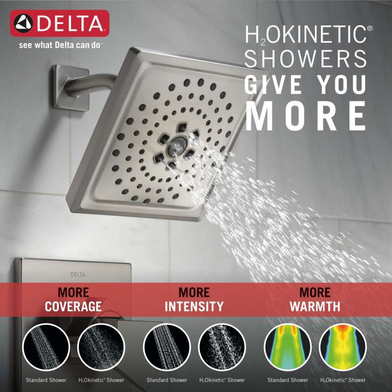 • H2okinetic technology showers feel like more water and more pressure, with more coverage.
