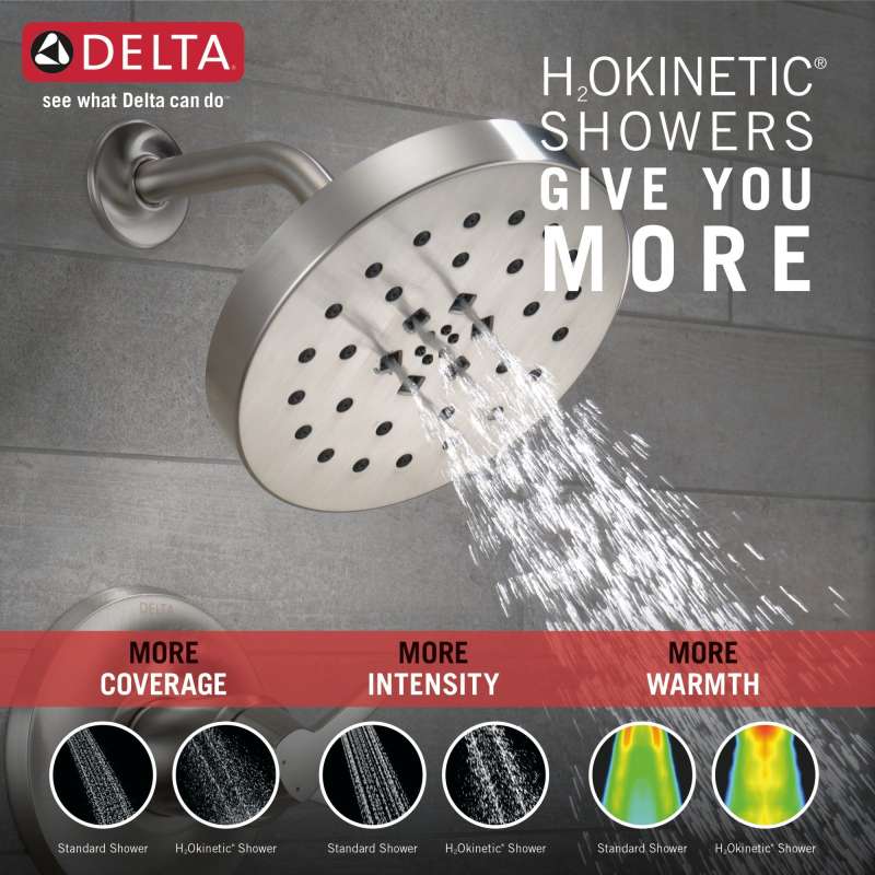 - H2okinetic technology showers feel like more water and more pressure, with more coverage.
