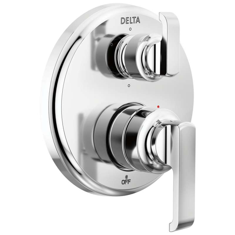 Familiar geometries and subtle curves in the tetra bath collection combine to bring a sleek, architectural look and feel to the bath. Familiar geometries and subtle curves in the tetra bath collection combine to bring a sleek, architectural look and feel to the bath. Delta showers with monitor pressure-balance valves are engineered to make sure you don't experience a sudden and possibly unsafe change in water temperature as a result of running water elsewhere, such as using a dishwasher, flushing a toilet or running a washing machine. Delta lumicoat finishes are guaranteed to resist water spots and mineral buildup and easily wipe clean without the need for cleaners or chemicals. The ultra-sleek surface repels liquids, resisting water spots and staying cleaner longer, so your faucet’s most commonly touched areas stay beautiful. By integrating separate controls on one trim with the multichoice integrated shower diverter, we've streamlined installation and your shower style. You can install with confidence, knowing delta products are backed by our lifetime limited warranty.