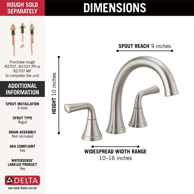 - Fits 3-hole 8-16 in. installations