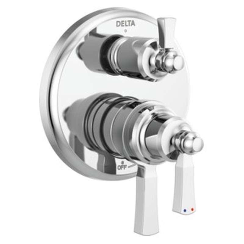 The dorval bathroom collection diverges from conventional expectations with regal accents and a powerful design that commands your attention. Inspired by the feminine lines of french architecture and the regal stature of german castles, the dorval bath collection balances grace and power in this modern take on new traditional design. With separate handles for volume and temperature control, this delta tub/shower provides a more refined showering experience. Simply set the water at your preferred temperature and turn the shower on or off with the volume control handle - without interrupting your set temperature. Delta pressure-balance valves use monitor technology to protect you and your family from sudden temperature changes.