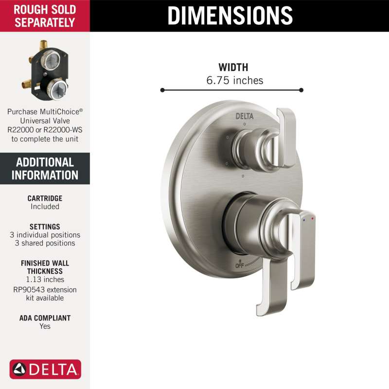 - Trim kit only, must order multichoice universal valve rough (r22000) separately to complete the unit.