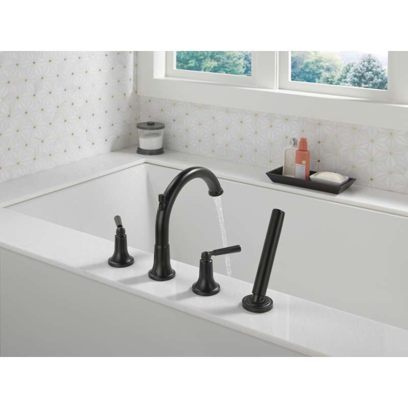 Complete your bath with a beautifully designed Delta Roman tub faucet with hand shower, meticulously crafted to turn heads and enhance your experience. The Saylor Bath Collection is an intriguing blend of traditional and contemporary design elements with strong, geometric forms and hints of industrial style in the handles. You can install with confidence, knowing that Delta faucets are backed by our Lifetime Limited Warranty.