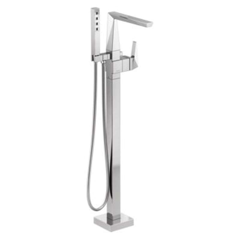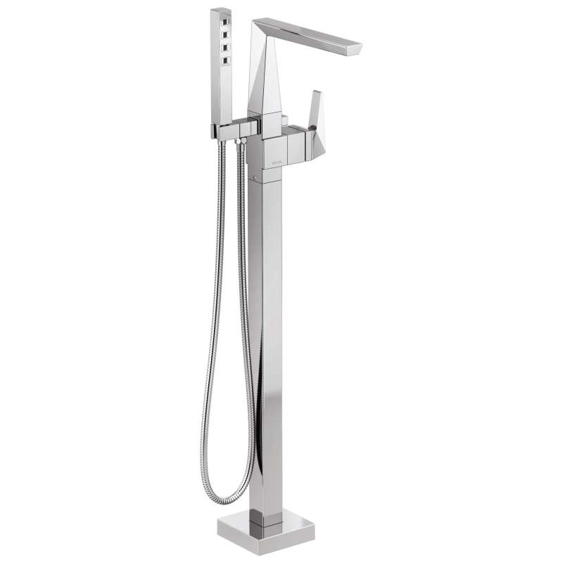 The prismatic faceting of the Trillian Bath Collection is an evolution of modern style that creates an edgy look which catches the light as well as the eye. Make a statement in your bath with a floor mount tub filler — an elegant complement to any freestanding bathtub. The included hand shower makes this a versatile addition to your bath, perfect for rinsing off, washing loved ones and pets, or keeping your tub clean. Our WaterSense labeled hand showers use at least 20% less water than the industry standard — helping you save water without compromising performance. You can install with confidence, knowing that Delta faucets are backed by our Lifetime Limited Warranty.