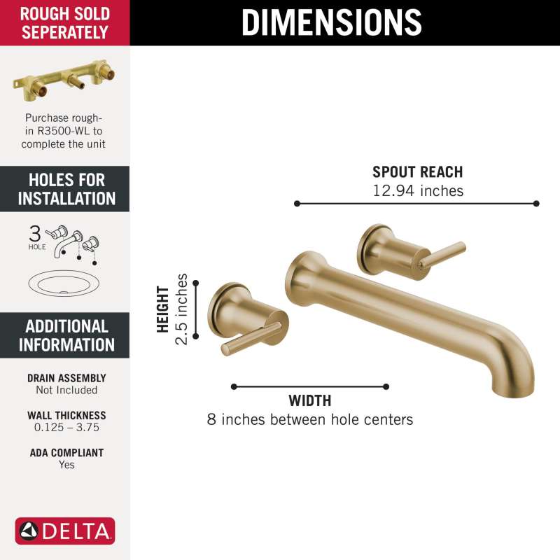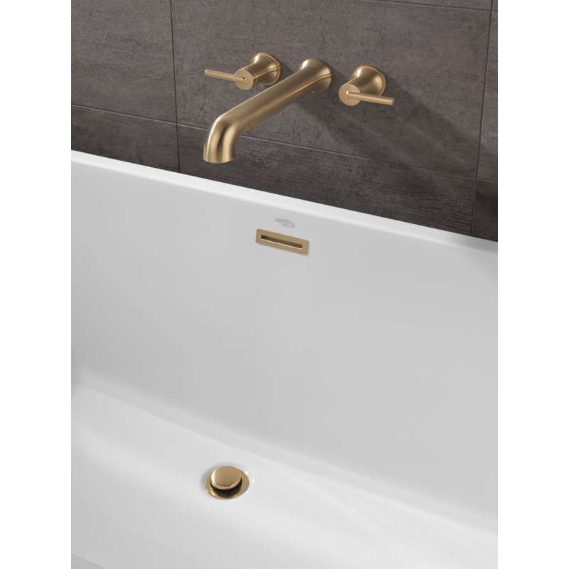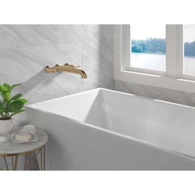 Complete your bath with a beautifully designed Delta roman tub wall-mount faucet, meticulously crafted to turn heads and enhance your experience. Designed to look like new for life, Brilliance finishes are developed using a proprietary process that creates a durable, long-lasting finish that is guaranteed not to corrode, tarnish or discolor. Take the chill out of contemporary with the eloquent warmth of Champagne Bronze in your bath. This vibrant, gold finish provides a vivid splash of contrast to your space for a look that's simultaneously modern and nimble, able to pair elegantly with traditional, transitional and contemporary décor. Brilliance finishes are durable, long-lasting and guaranteed not to corrode, tarnish or discolor, so you can enjoy a coordinated bath you'll love to look at for life. You can install with confidence, knowing that Delta faucets are backed by our Lifetime Limited Warranty.