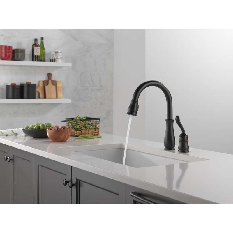 Delta magnatite docking uses a powerful integrated magnet to pull your faucet spray wand precisely into place and hold it there so it stays docked when not in use. Delta faucets with diamond seal technology perform like new for life with a patented design which reduces leak points, is less hassle to install and lasts twice as long as the industry standard. Kitchen faucets with touch-clean spray holes allow you to easily wipe away calcium and lime build-up with the touch of a finger. You can install with confidence, knowing that delta faucets are backed by our lifetime limited warranty. Industry standard is based on asme a112.18.1 of 500,000 cycles.